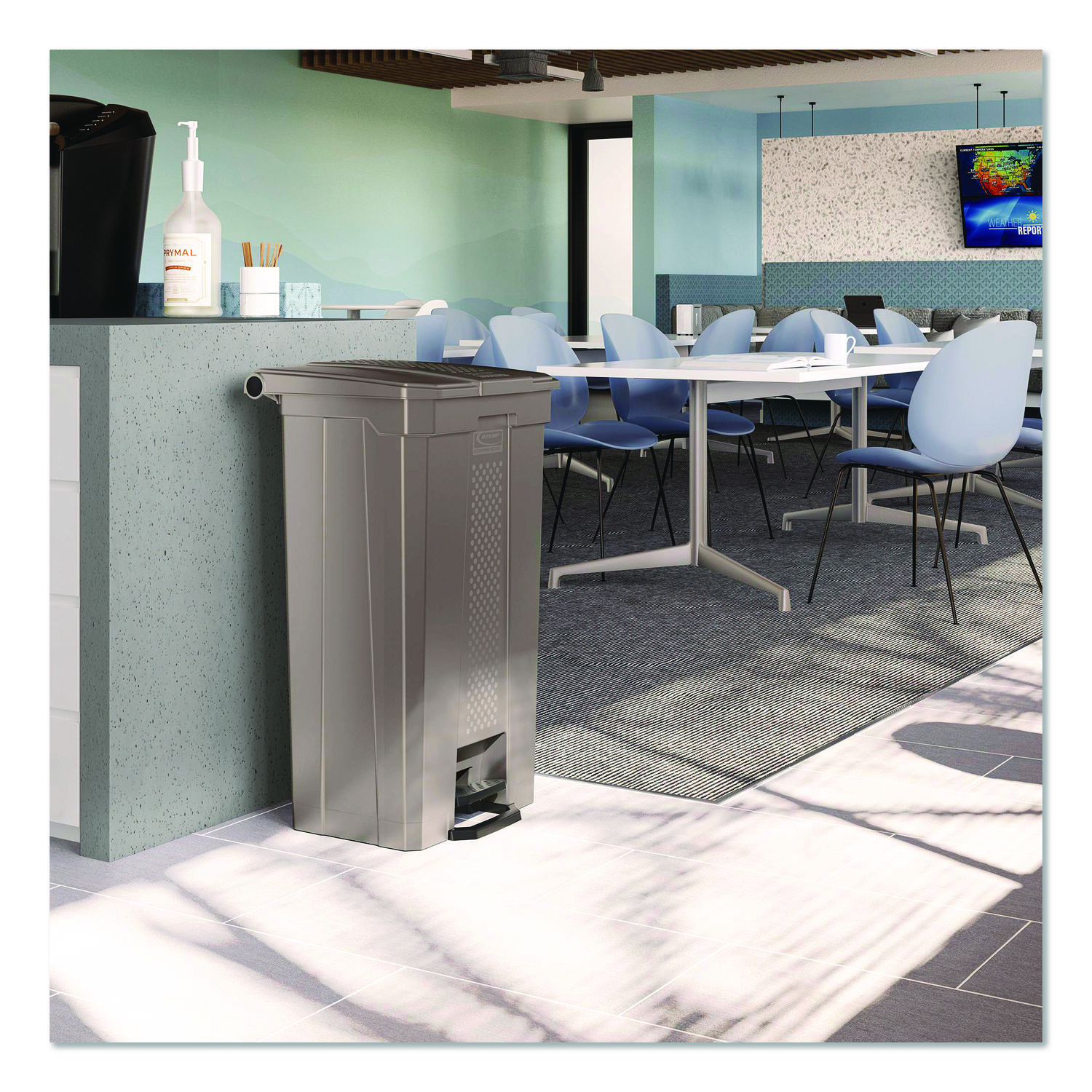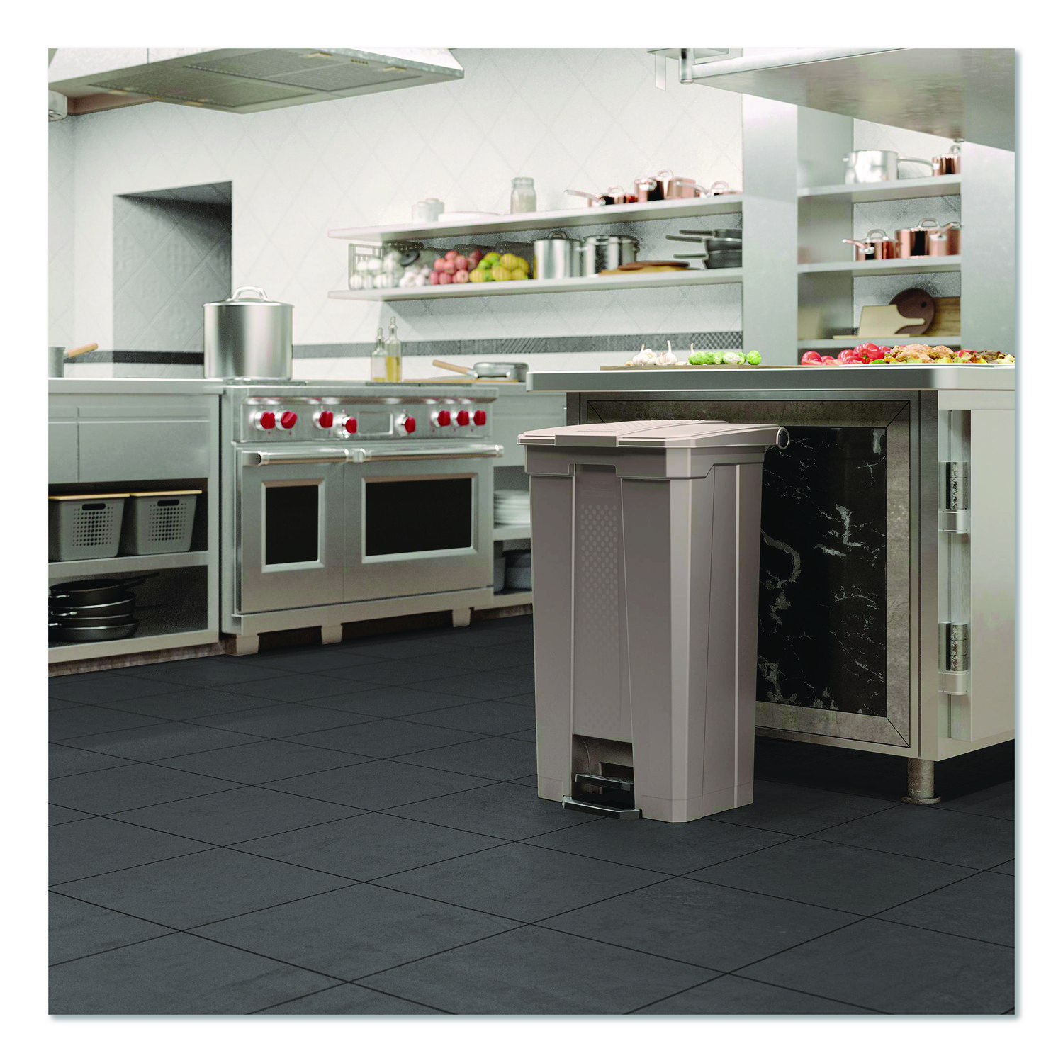 The Suncast Commercial® Step-On Trash Can is a smart solution for your waste management needs. This can features a foot pedal on the front of the can that allows for an easy and quick way to dispose of trash into the can. Engineered with high-quality resin, this trash can will not rust and is resistant to denting and bending and is easy to clean and disinfect. With a large capacity and hands-free operation, this trash can is ideal for busy environments that demand efficiency and hygiene. This step-on trash can is designed to meet the demands of everyday use, where a quick disposal is needed! Waste Receptacle Type: Indoor All-Purpose Waste Bin; Material(s): Resin; Application: Indoor All-Purpose Waste Disposal; Interior Volume Capacity: 23 gal.