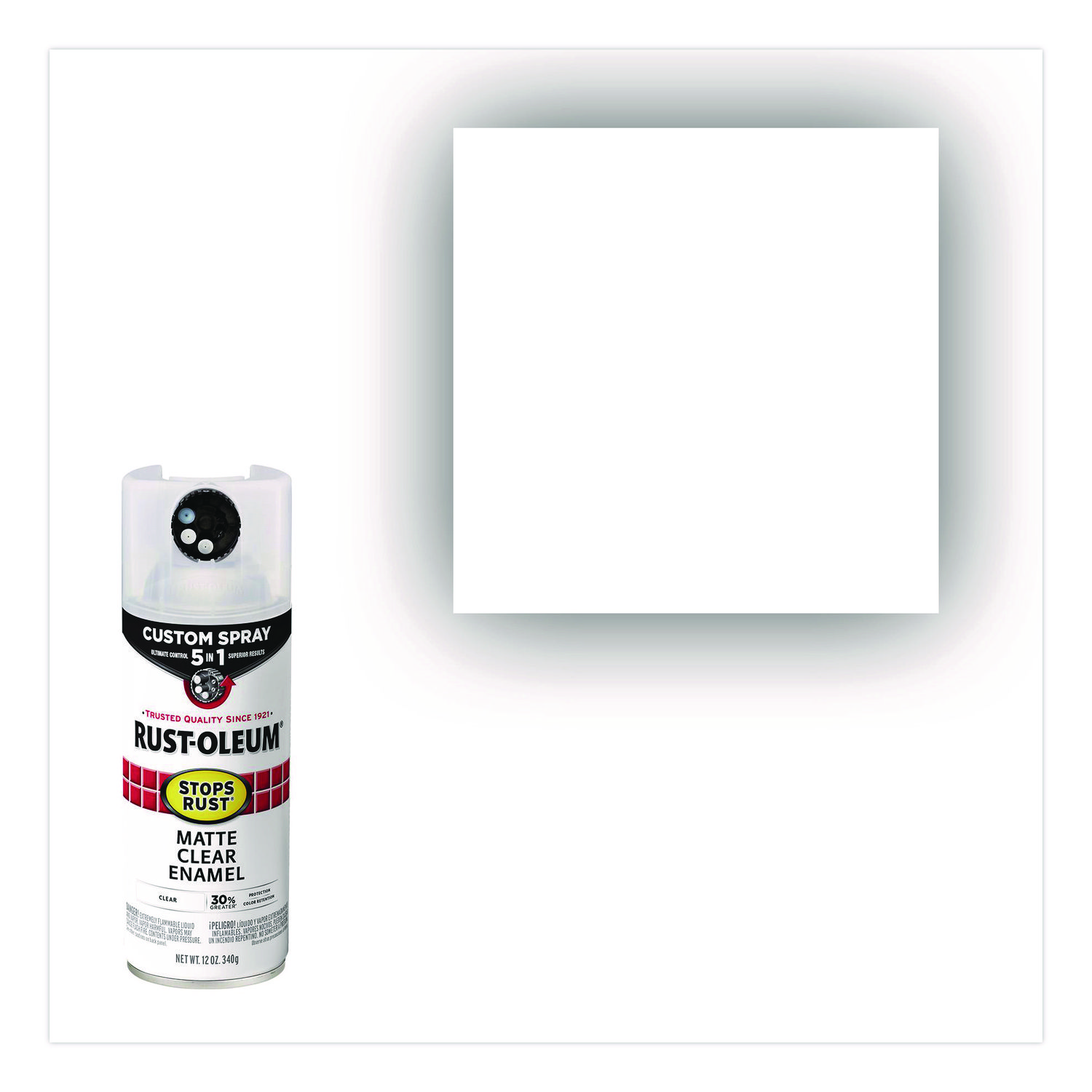 Rust-Oleum Stops Rust Custom Spray 5-in-1 allows you to choose between five different spray patterns for ultimate control and confidence over your next project. The advanced Stops Rust formula provides 30% greater corrosion resistance and color retention compared to original matching Stops Rust colors with standard tip. Ideal for ferrous, nonferrous metal and wood surfaces. Not for use on galvanized metal. Paint Sub-Category: Spray Paint; Intended Application Environment: Interior/Exterior; Finish/Sheen: Matte; Color(s): Clear.