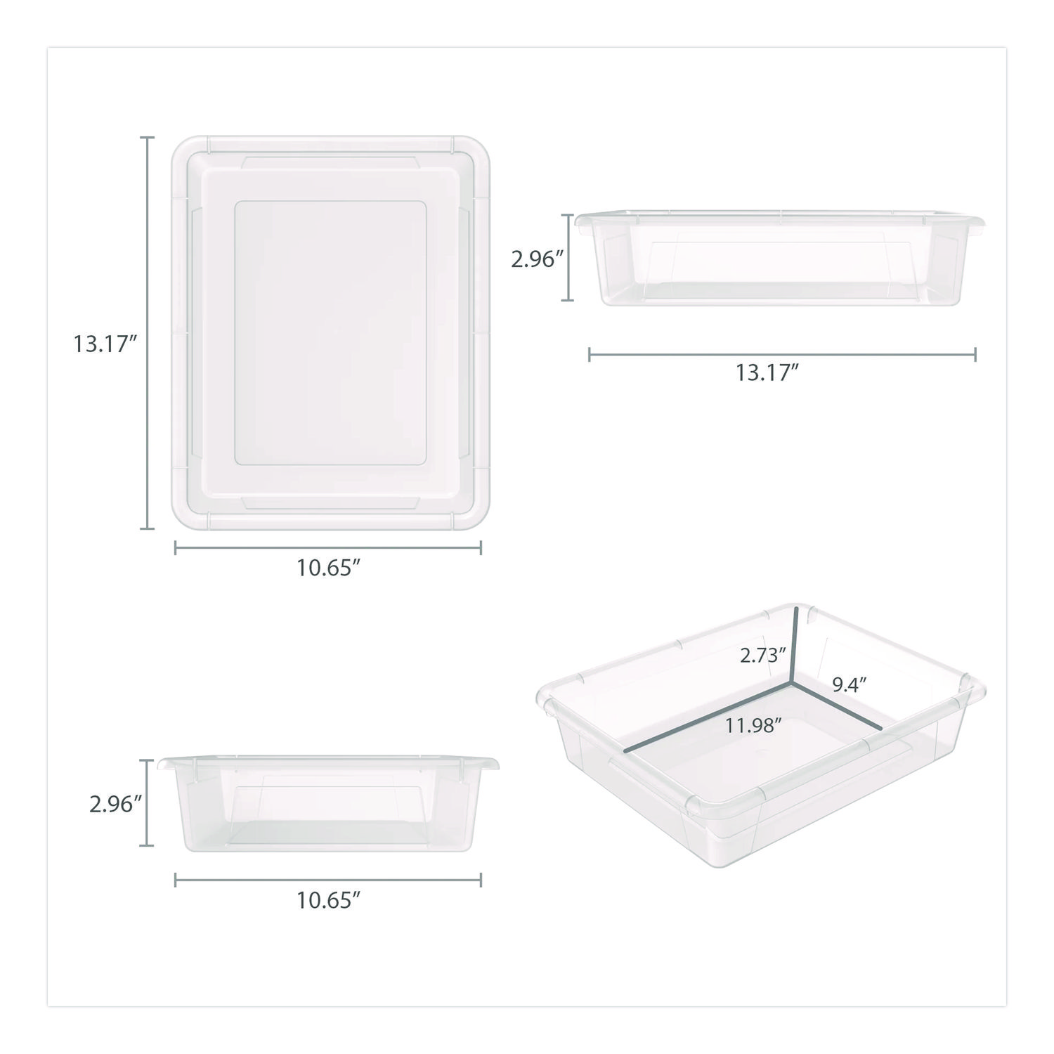 Storage Tray, Flat, 1.69 gal, 10.65″ x 13.17″ x 2.96″, Translucent, 5/Pack