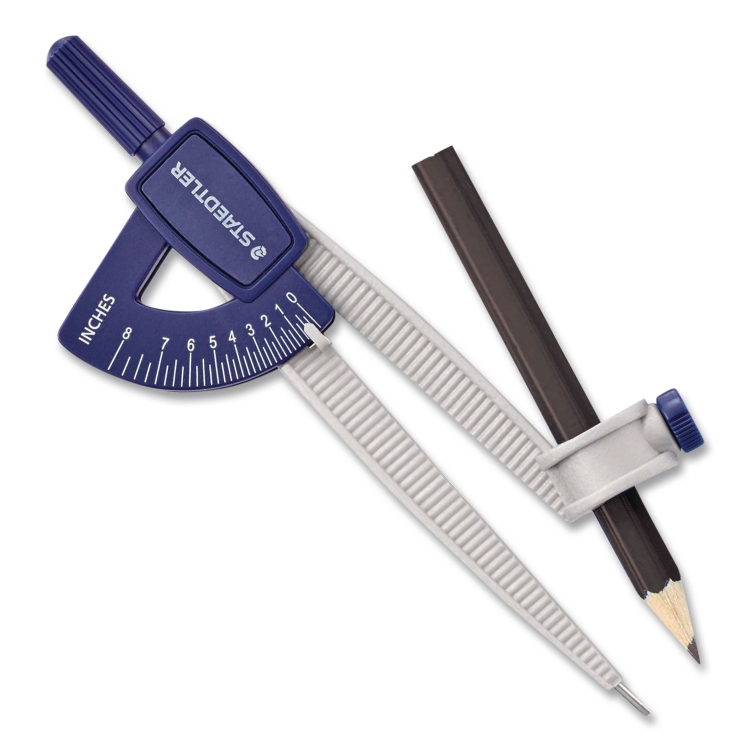 Stay safe while learning with the obtuse-angled safety needle on this student compass. The easy-to-hold top supports a firm grip for precise drawings. A pre-sharpened pencil comes with this Staedtler student compass for immediate use, and a universal adapter lets you add a new one when the old one is finished. Maximum Circle Diameter Created [Max]: 8.5″; Material(s): Plastic; Color(s): Blue.