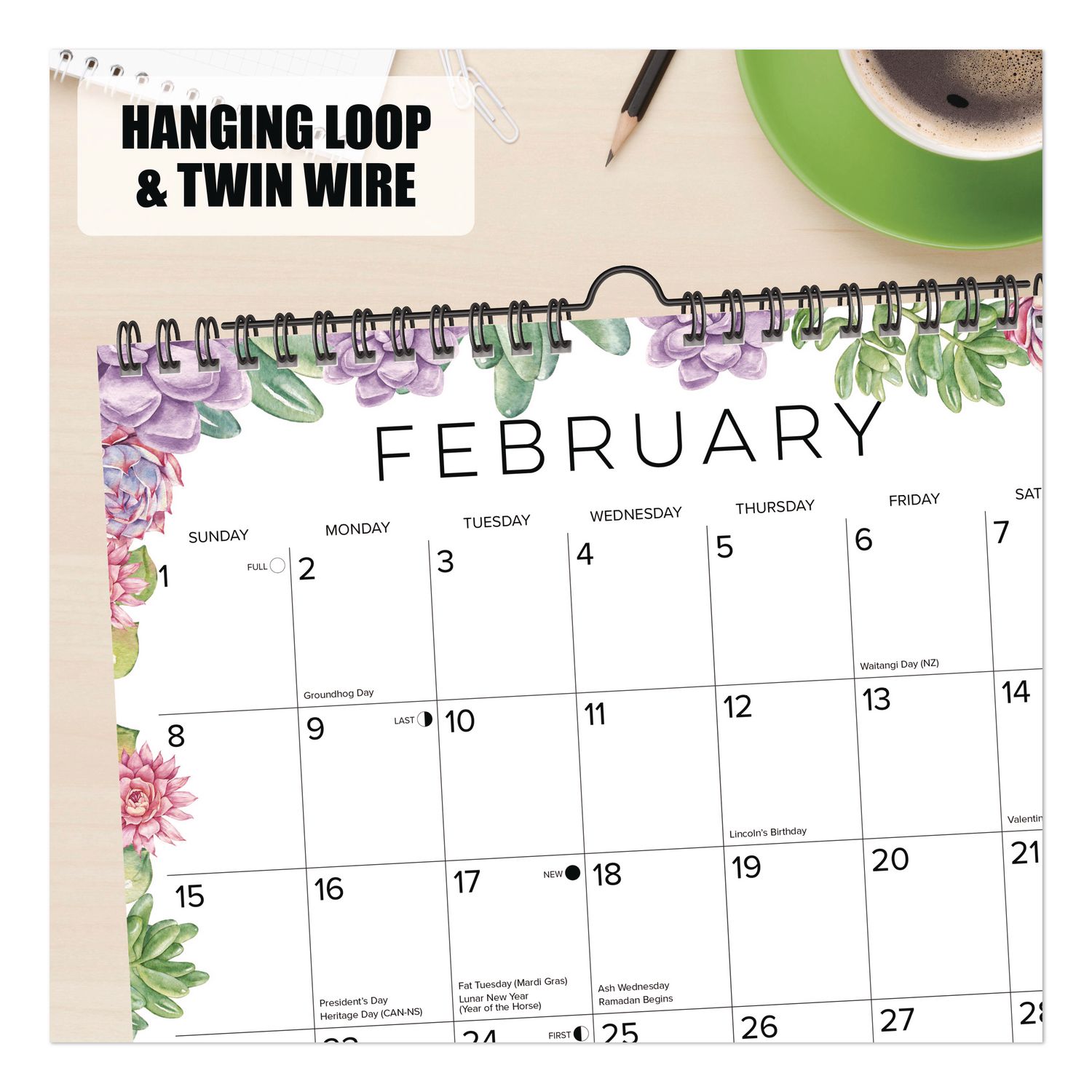 Let the diverse and charming world of succulents bring a touch of nature’s resilience and calm to your every day. Dated: Yes; Academic Year: No; Calendar Format: Monthly; Calendar Spread Format: One Month Per Page.