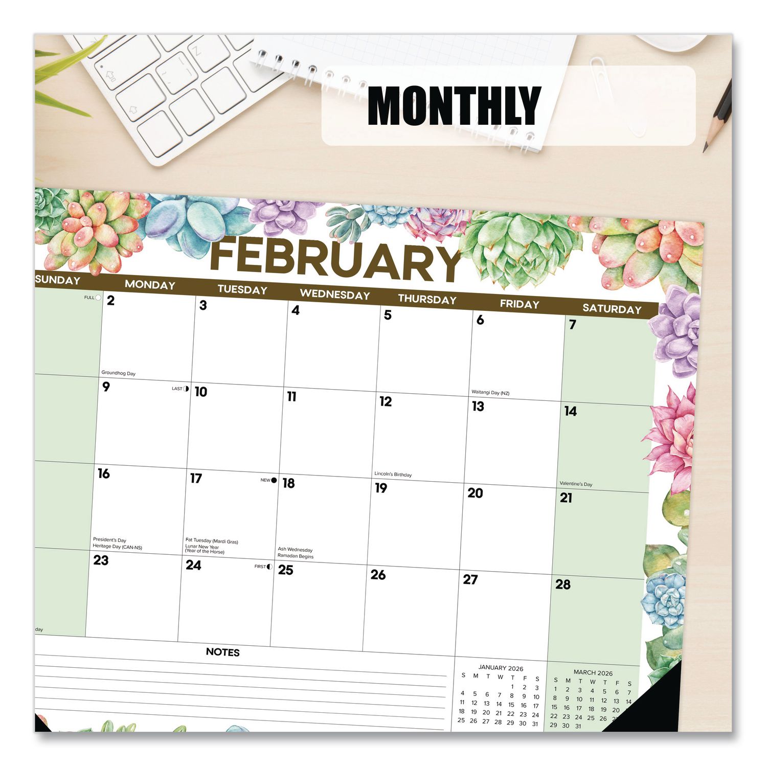 Succulents Large Monthly Desk Pad Calendar, 22 x 17, White/Multicolor Sheets, Black Headband/Corners, 12-Month (Jan-Dec) 2026