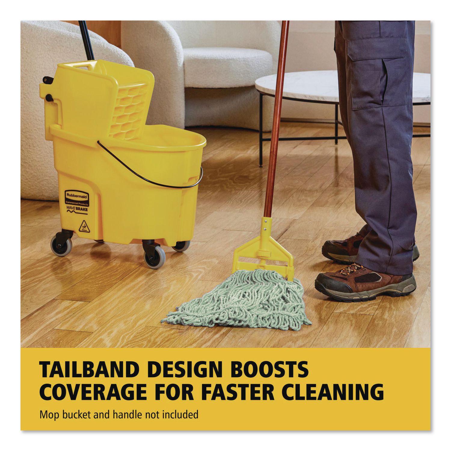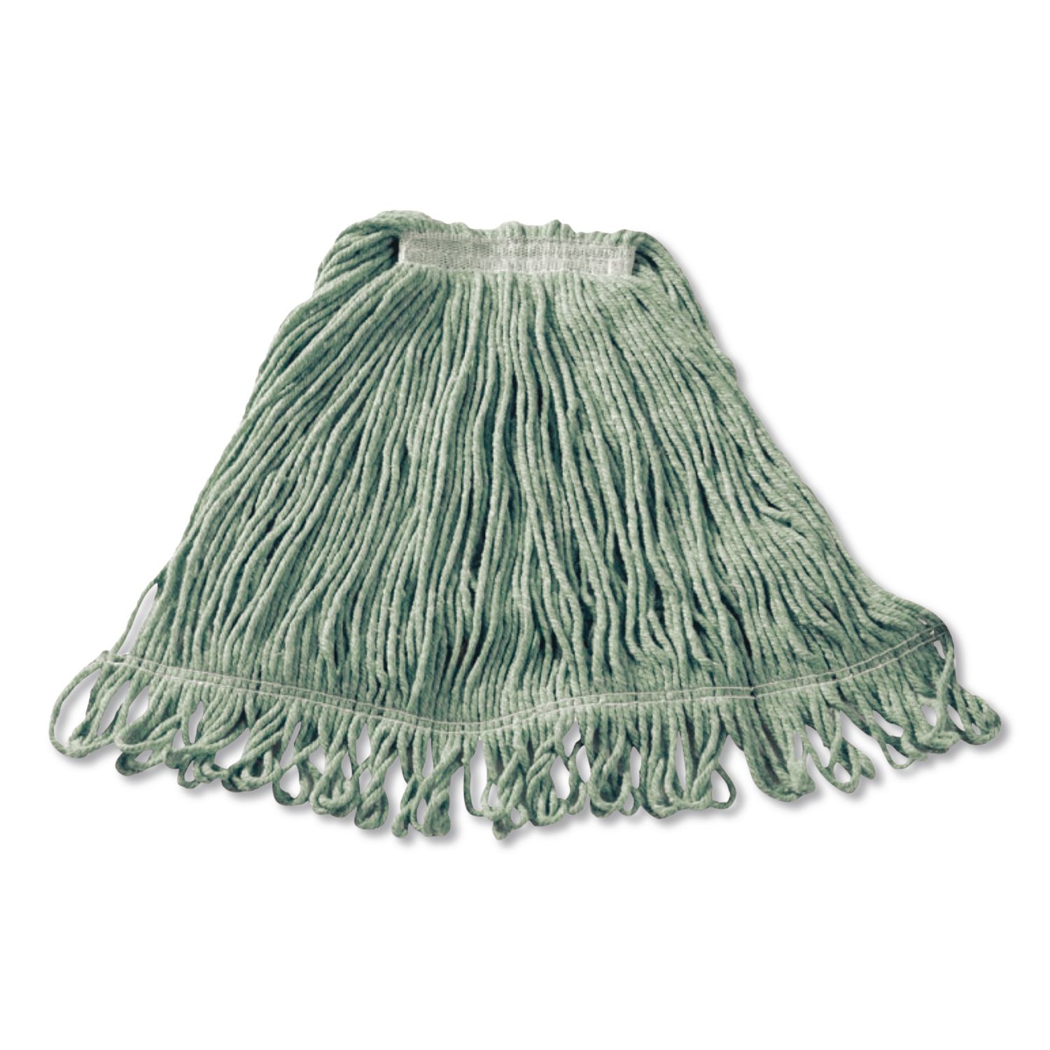 The Rubbermaid® Commercial Super Stitch Blend Mop has a blend of 4-ply cotton and synthetic fibers for higher absorbency and more launderings than cotton mops, and has looped ends and a yarn tailband to reduce tangling and fraying for improved performance. The synthetic mesh headband resists moisture retention so the mop head can dry between uses. Color-coded to help minimize cross-contamination. These mop heads are suitable for use in commercial and industrial applications. Mop Head Type: Wet Mop; Application: Floor Maintenance; Mop Head Style: Looped End; Mop Head Size: Medium.