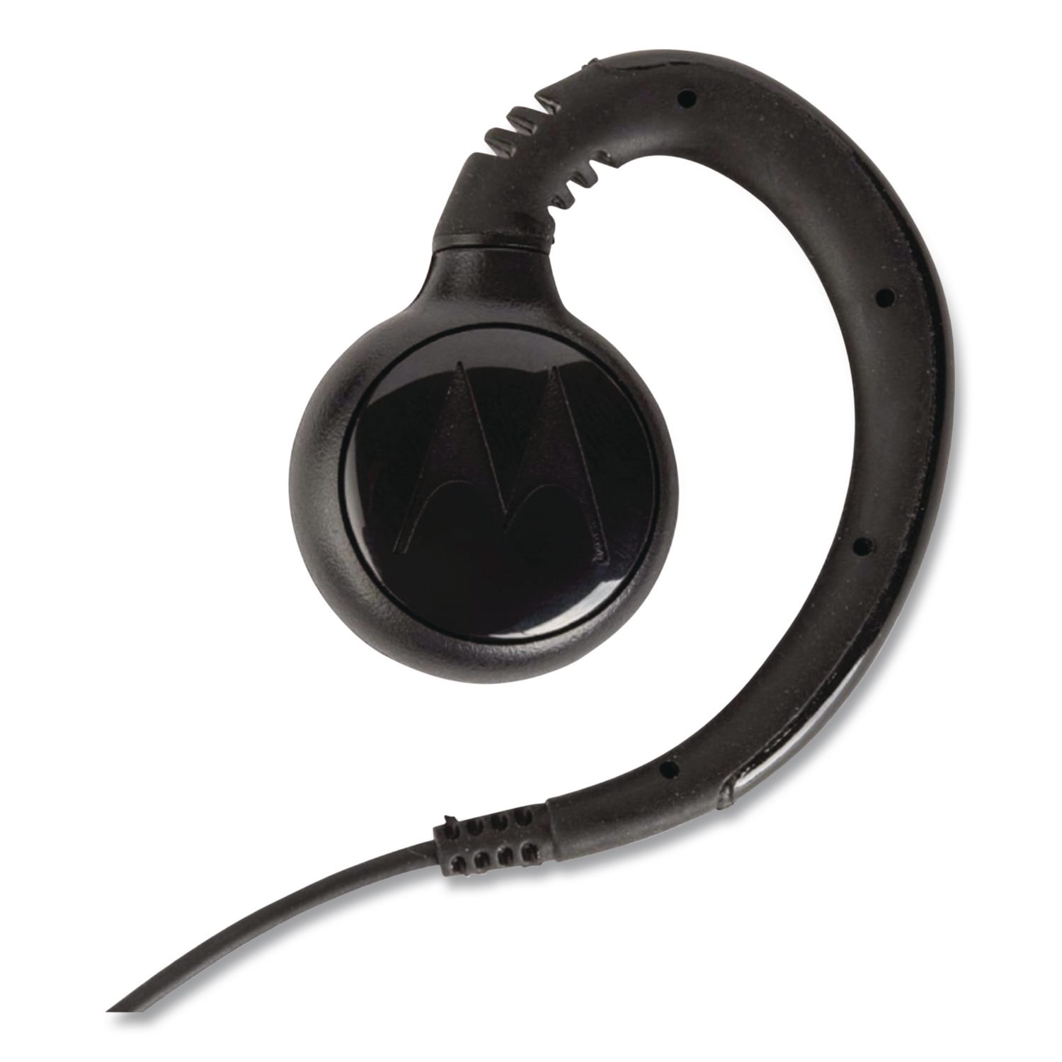 Connect this earpiece to your two-way radio for convenient communication. Easy-to-access push-to-talk button and in-line microphone keep radio transmissions easy. Designed with comfort in mind, with a rotating joint, it can be worn on the left or right ear. Headset Type: Monaural; Headset Style: Over The Ear; Earpiece Type: Earhook; Earpiece Material: Foam/Plastic.