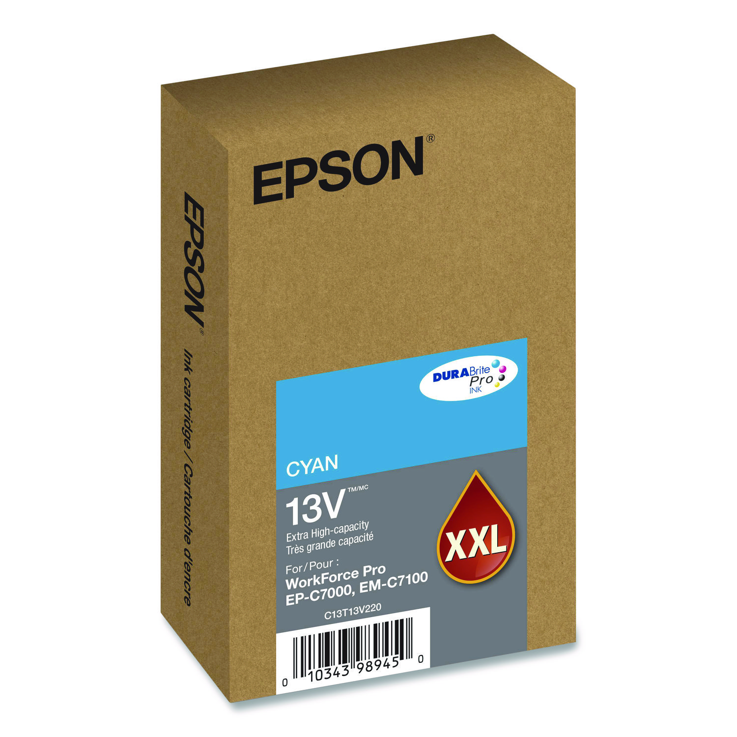 Epson® DURABrite® Pro 13V extra high-capacity ink cartridges are professional quality ink for your business needs. They are engineered for extra-high volume print applications and formulated with fast-drying pigment ink designed for the high-speed print jobs. These ink cartridges make your professional documents stand out by delivering sharp text, bright colors and print shop quality results. Epson® genuine ink produces prints that look brilliant no matter what the project. Device Types: Inkjet Printer; Color(s): Cyan; Page-Yield: 8,000; Supply Type: Ink.