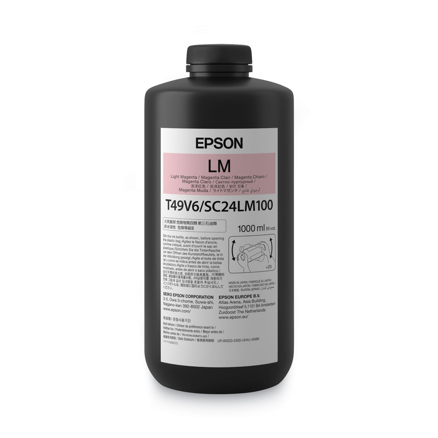 Fill up your SureColor T3170x 24″ Desktop Printer with this 10 color ink set featuring red, white and varnish. UltraChrome UV Ink delivers exceptional color quality on a variety of media, including hard, flat surfaces. Ideal for indoor and outdoor signage applications, it offers the perfect solution for printing on foam board, wood, glass, metal and more. This high-capacity ink bottle is uniquely keyed and features auto-stop technology for easy, mess-free filling. Device Types: Inkjet Printer; Color(s): Light Magenta; Supply Type: Ink; Market Indicator (Cartridge Number): T49V.