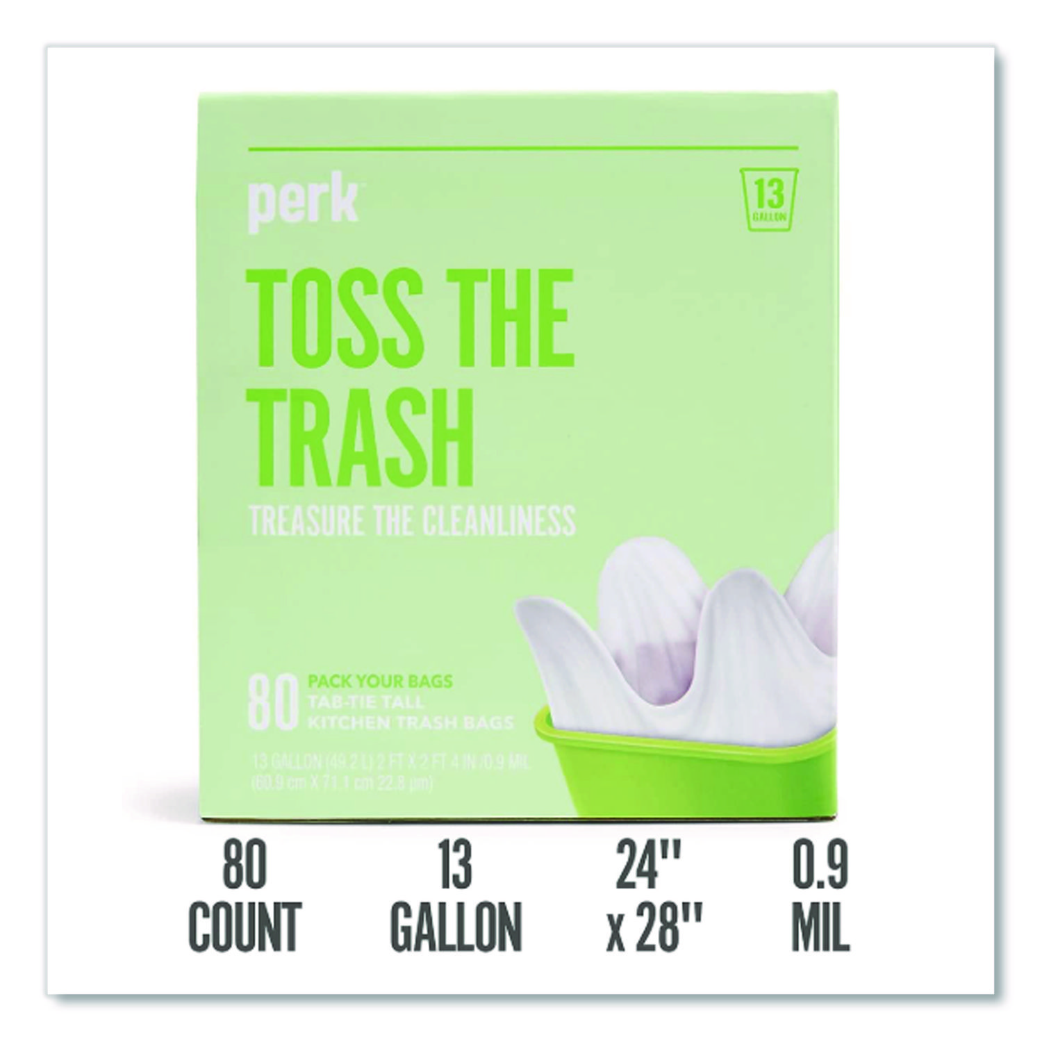 Tab-Tie Tall Kitchen Trash Bags, Tie-Flap, 13 gal, 28″ x 24″, White, 80/Box