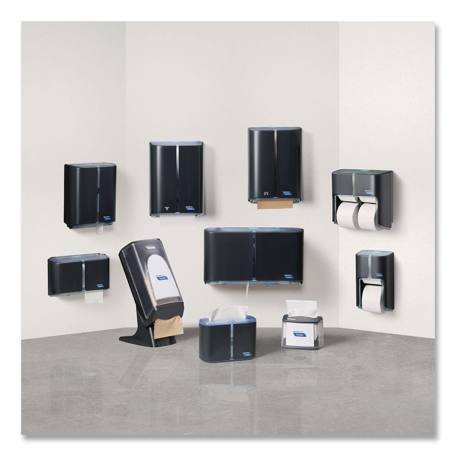 The Cascades PRO Tandem™ Double Jumbo Roll Toilet Paper Dispenser meets all the challenges of the modern facility and is designed to improve hygiene, while lowering operational costs. Featuring a sleek, modern finish and a no-touch dispensing mechanism, it’s perfect for use in busy restrooms across the education, retail, industrial, foodservice, and commercial building markets. It’s 99.9% jam-free and offers fast and reliable dispensing to ensure the ultimate guest experience. Offers high capacity performance with 2,500 feet of 2-ply jumbo bath tissue for fewer change-outs—25% more capacity compared to universal 9″ double JRT dispensers. Both rolls are fully enclosed within the dispenser adding another level of hygiene for end-users. Featuring a quick check design, the dispenser allows customers and custodial staff to quickly recognize when it’s time to refill, without having to open the unit. Non-sequential, hassle-free reloading results in reduced maintenance times and costs and minimizes roll handling. Additionally, a controlled system within the dispenser reduces waste by blocking access to the backup roll until the current roll is empty. A fast and simple dual lock can be changed from an easy-match key-lock to a push button option using the slide button. Conforms to ADA guidelines when properly installed. For Roll Size: 1,250 ft; Roll Type: JRT; Dispenser Capacity (text): Two Rolls; Color(s): Gray.