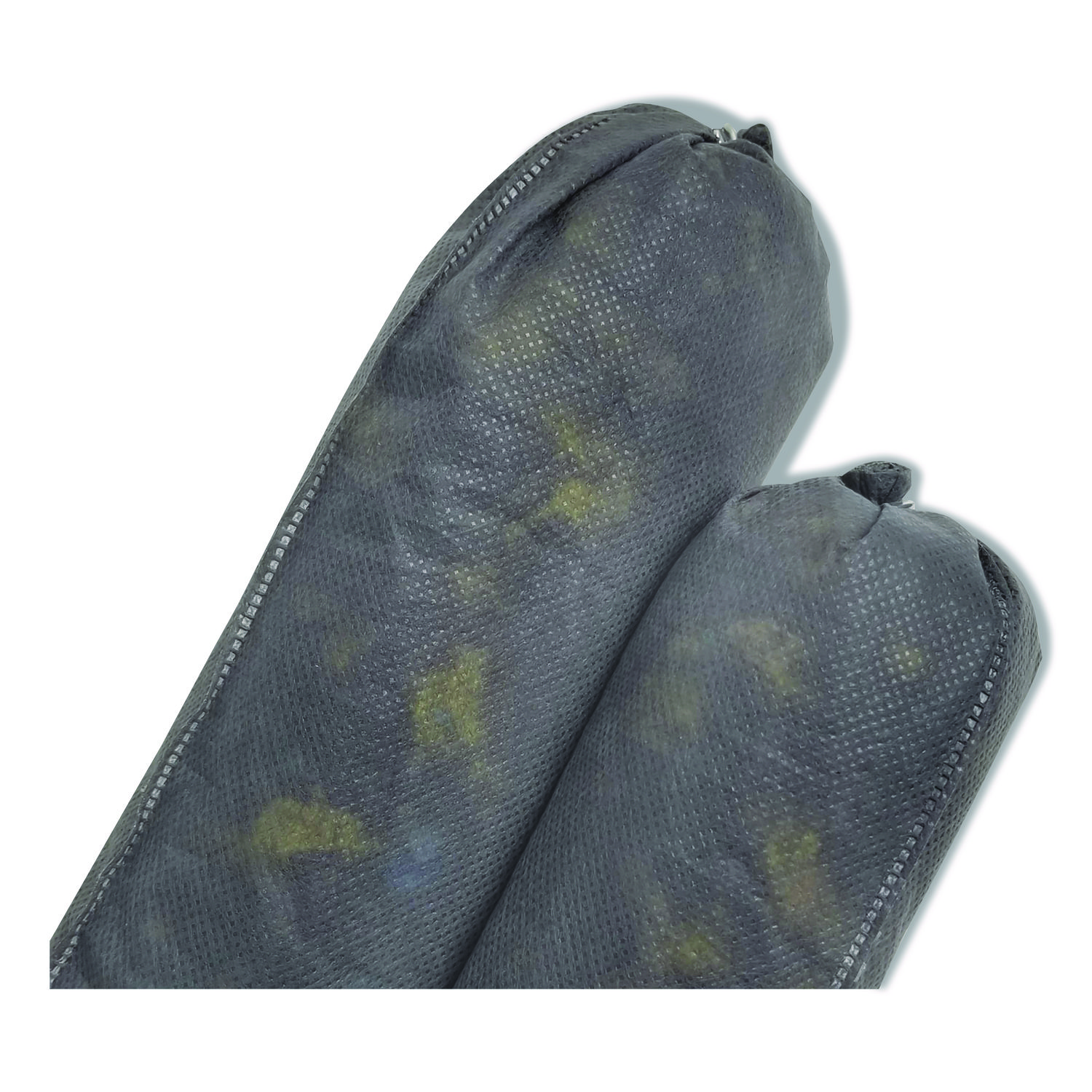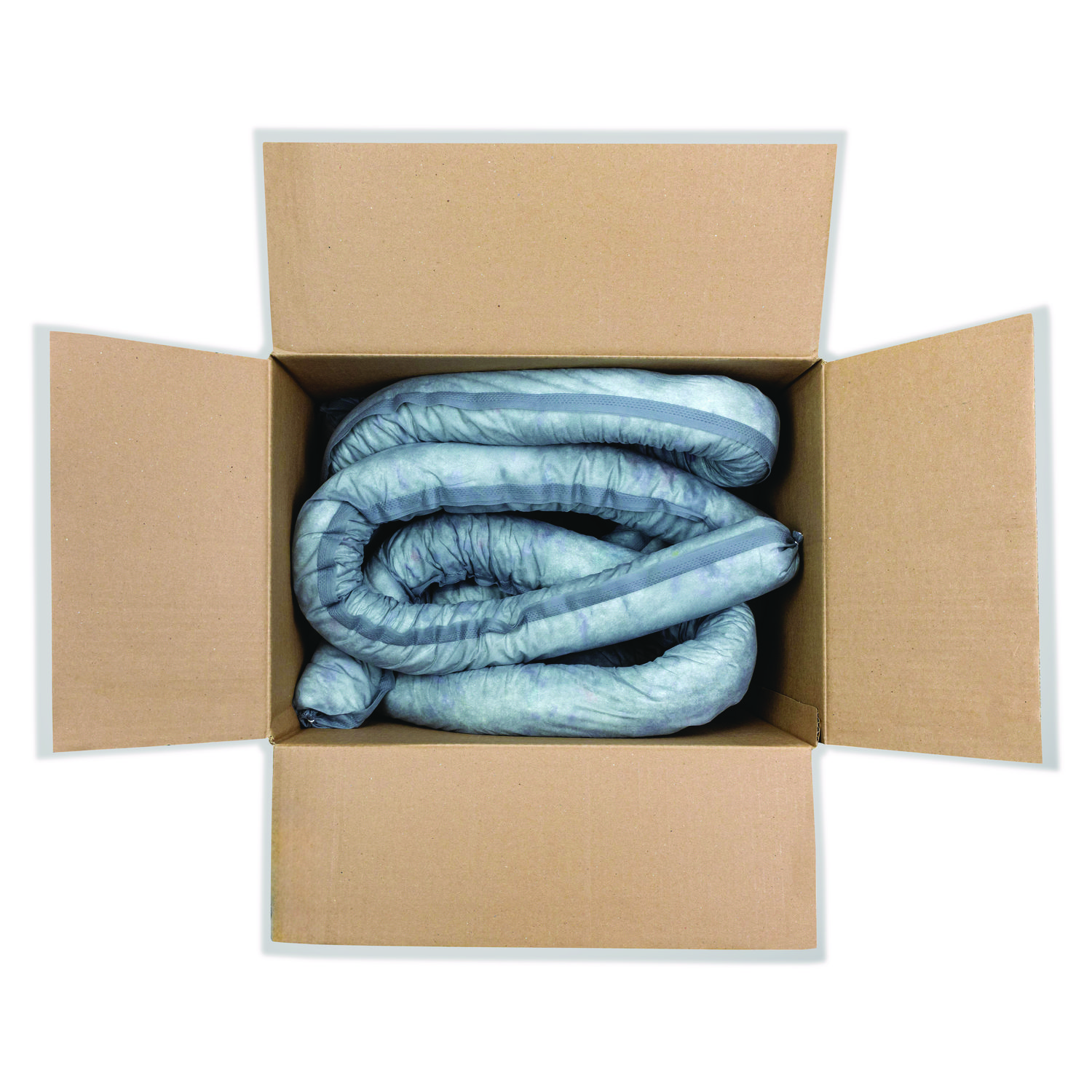 Helps contain the spread of spills to nearby work areas. Able to absorb oil and hydrocarbon-based fluids while repelling water. Most effective when used outdoors. Wraps around the base of equipment. Sorbents Type: Sock; Absorbing Volume (Unit): 1.03 gal; Material Absorbed: Oil; Water; Depth: 3″.