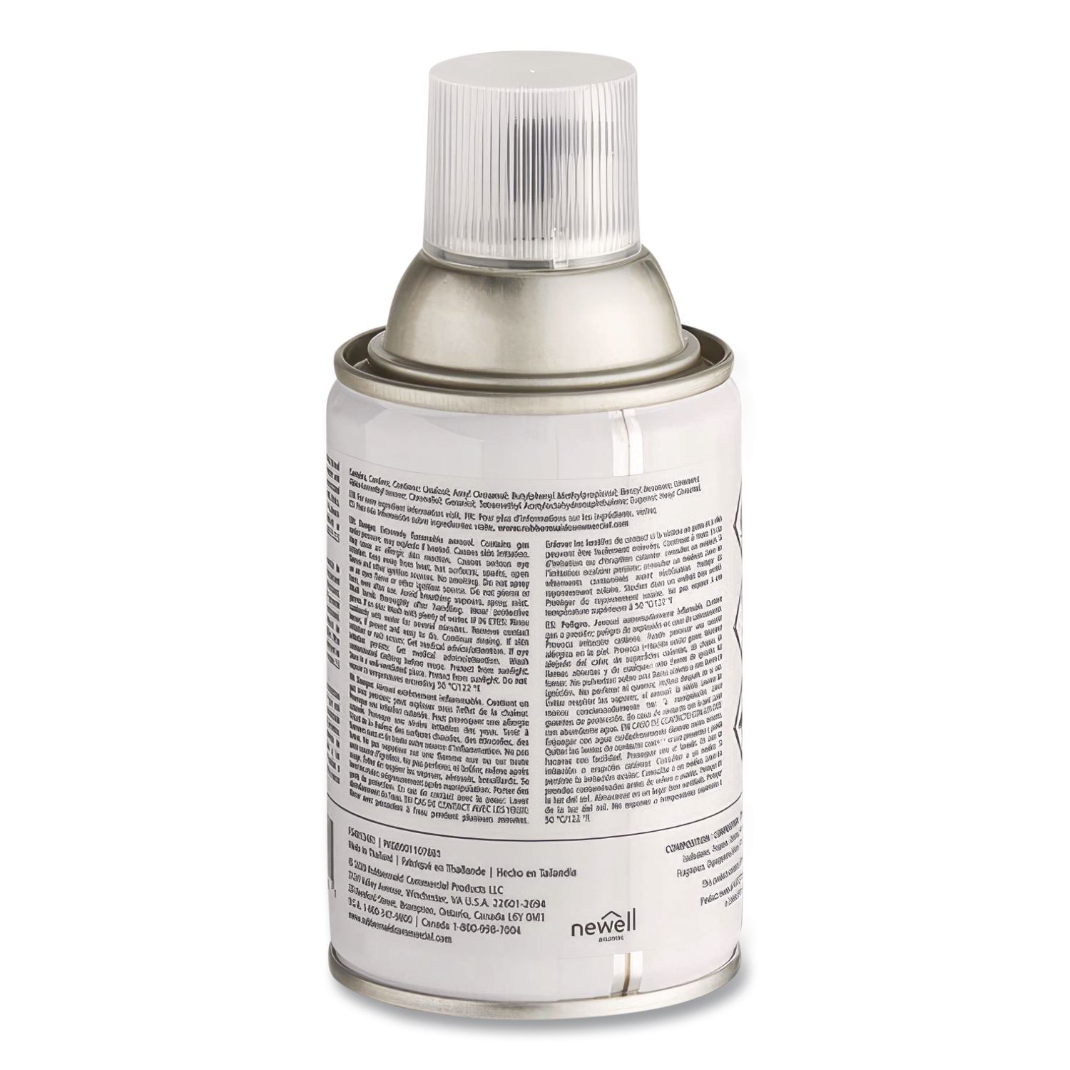Refreshes any washroom with an invigorating scent. This commercial air freshener refill offers 90 to 180 days of maximum odor control distributed in a fine dry mist with 63% fewer VOCs per spray than standard aerosol refills. For use with the Rubbermaid Commercial Microburst 9000 Aerosol Air Freshener dispenser (sold separately). Scent: Mountain Peaks; Physical Form: Liquid; Application: Automatic Odor Control; Volume Capacity: 5.3 oz.