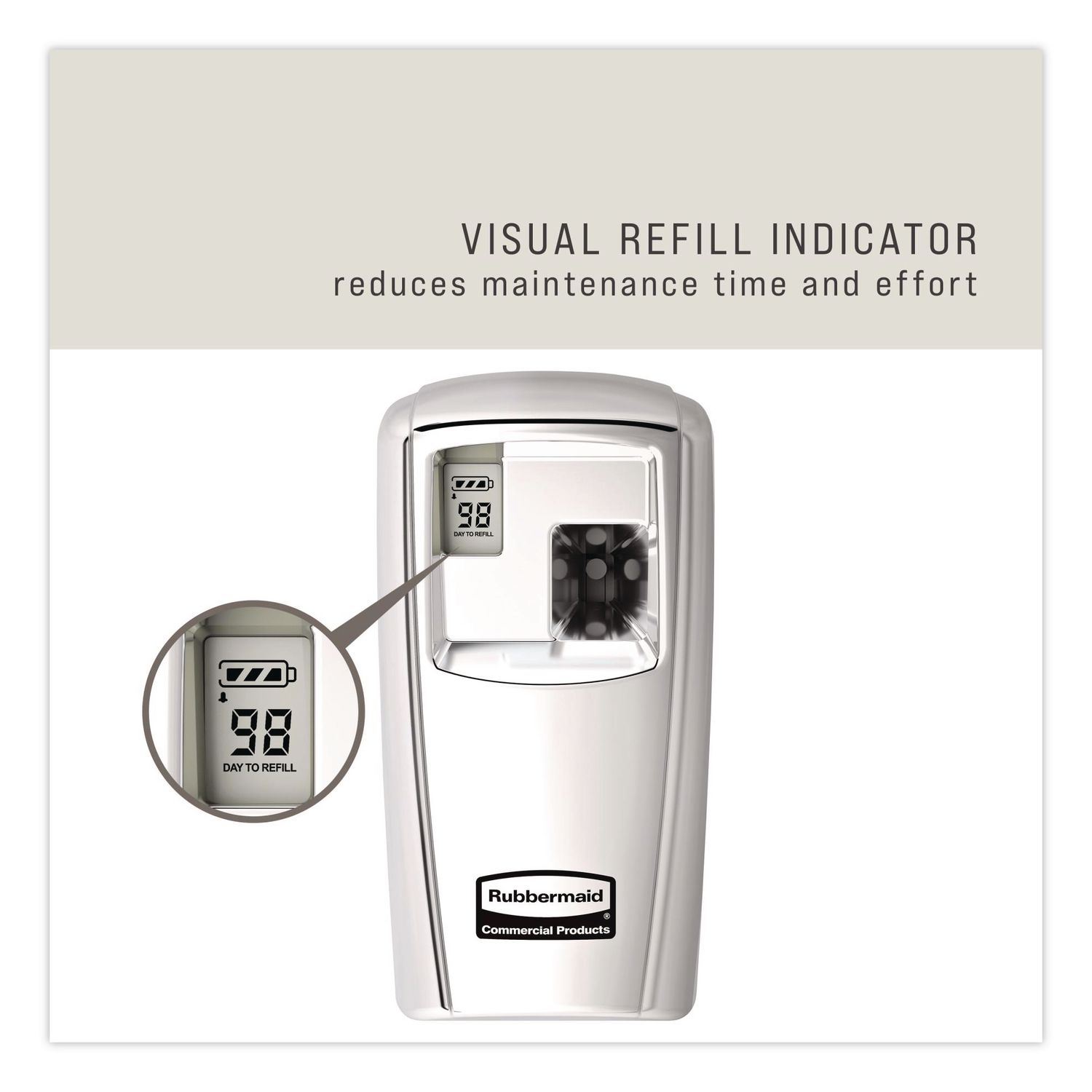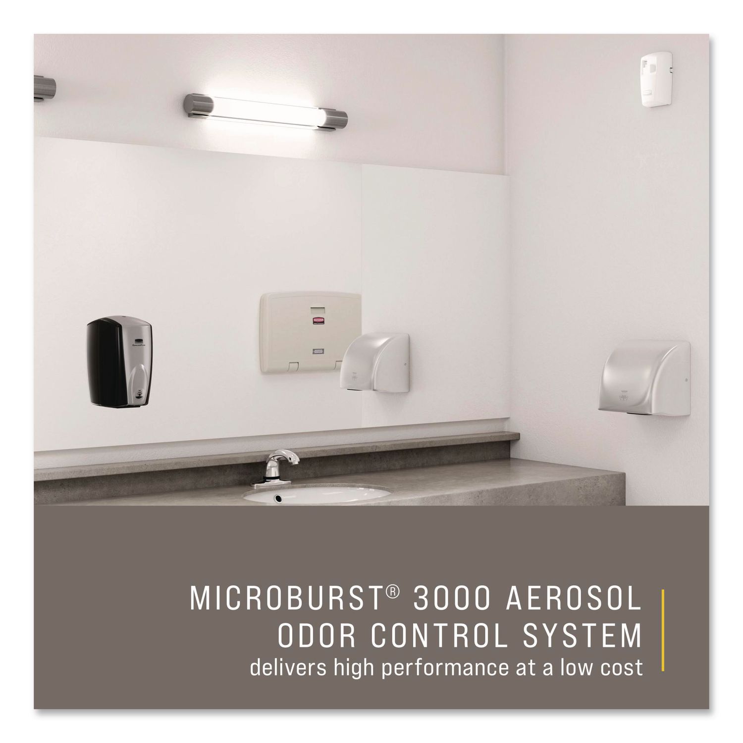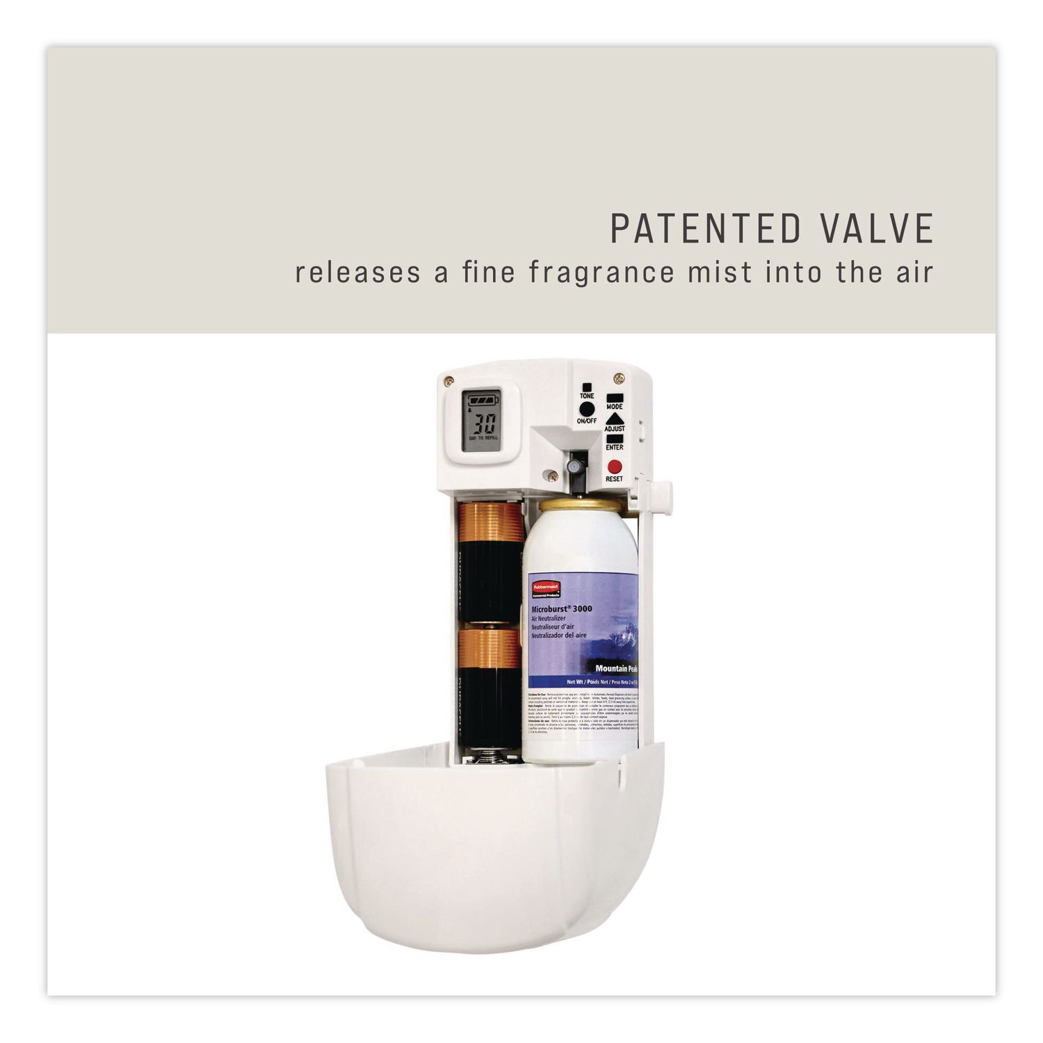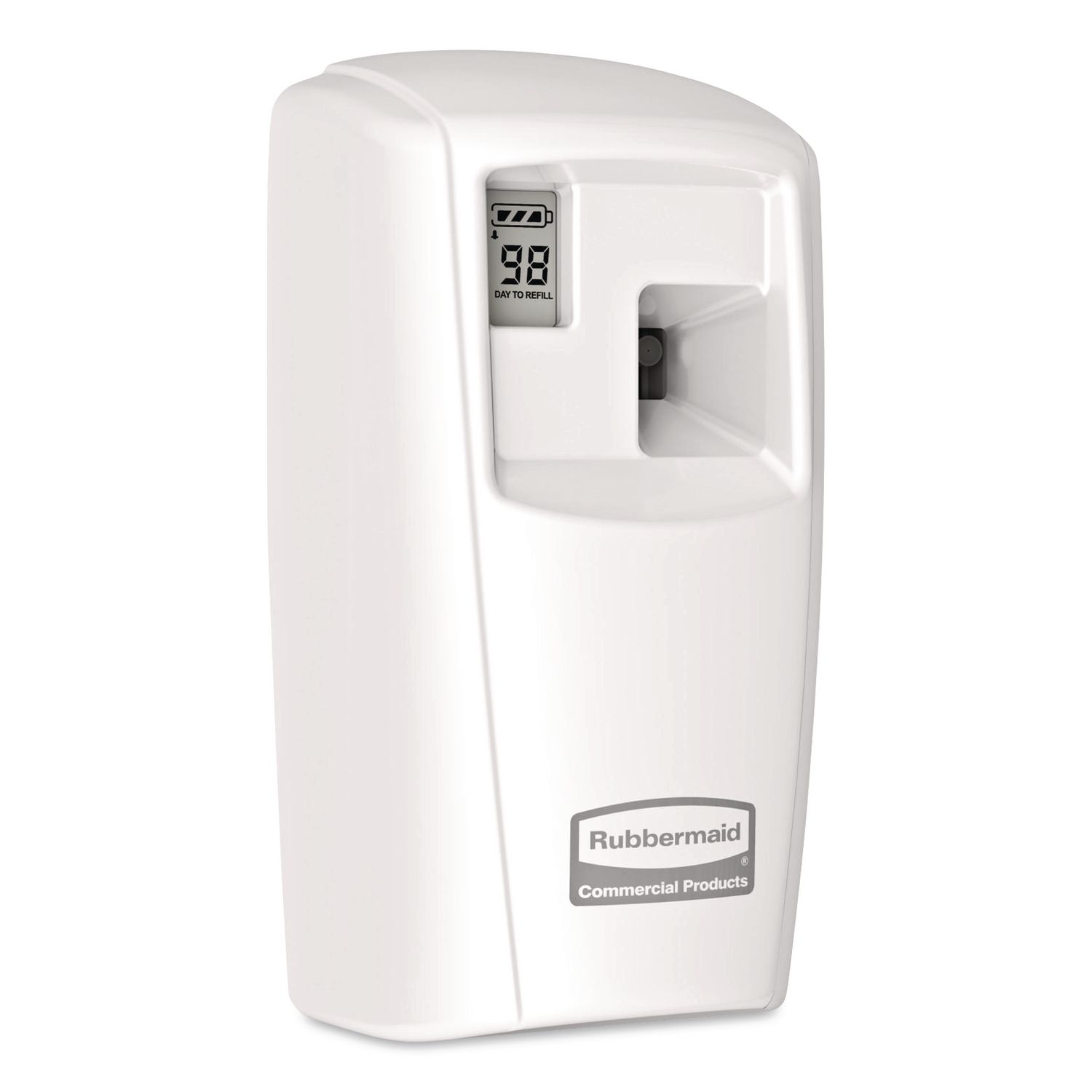 Rubbermaid Commercial Products Microburst delivers air freshener with Microtrans Odor Neutralizer to eliminate odors. Pharmaceutical-grade steel valve distributes a diverse selection of high quality fragrances in a fine mist to terminate washroom odors. Ready-to-use out of the box, it features smart chip technology for maximum odor control from 30 to 168 days with flexible programming options. With a “Days to Refill” indicator to remind staff when needed refills are approaching. Microburst® 3000 LCD. Material(s): Plastic; Color(s): White; Height: 6.6″; Width: 3.25″.
