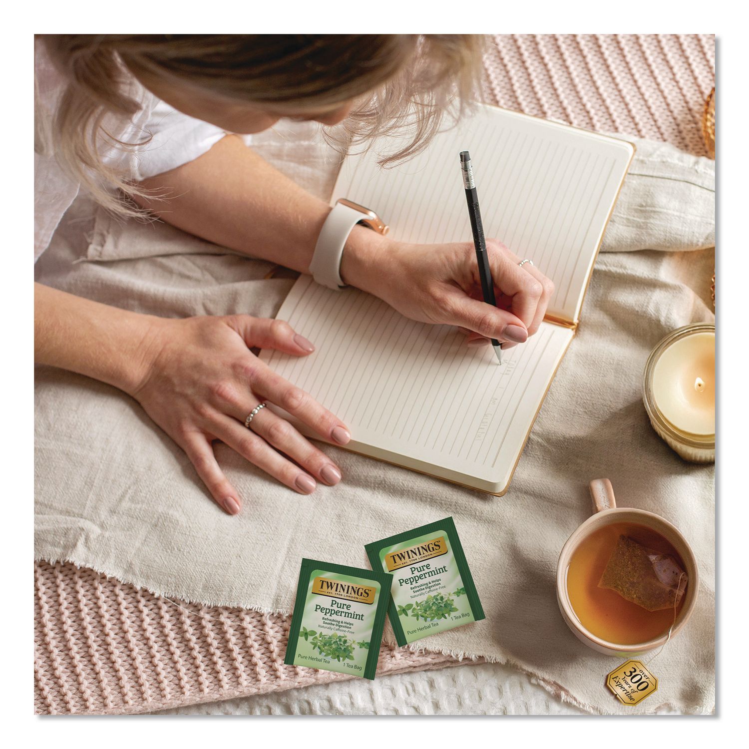 TWININGS® master blenders travel the world seeking only the finest teas, spices, herbs and fruit infusions available to then expertly blend each one using techniques perfected over 300 years. So whether it’s refreshing, soothing, spicy or flavorful, there’s a Twinings tea to suit your mood throughout the day. Beverage Type: Herbal Tea; Flavor: Pure Peppermint; Product Packaging: Tea Bag; Capacity (Weight): 0.07 oz.