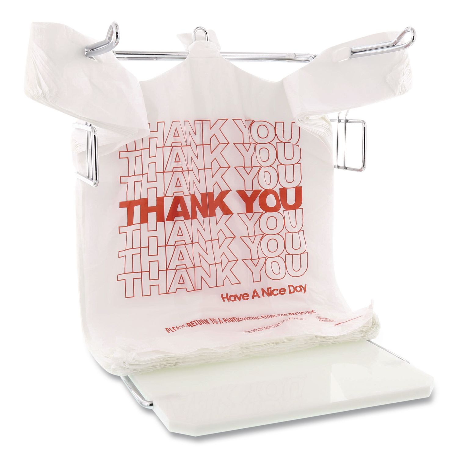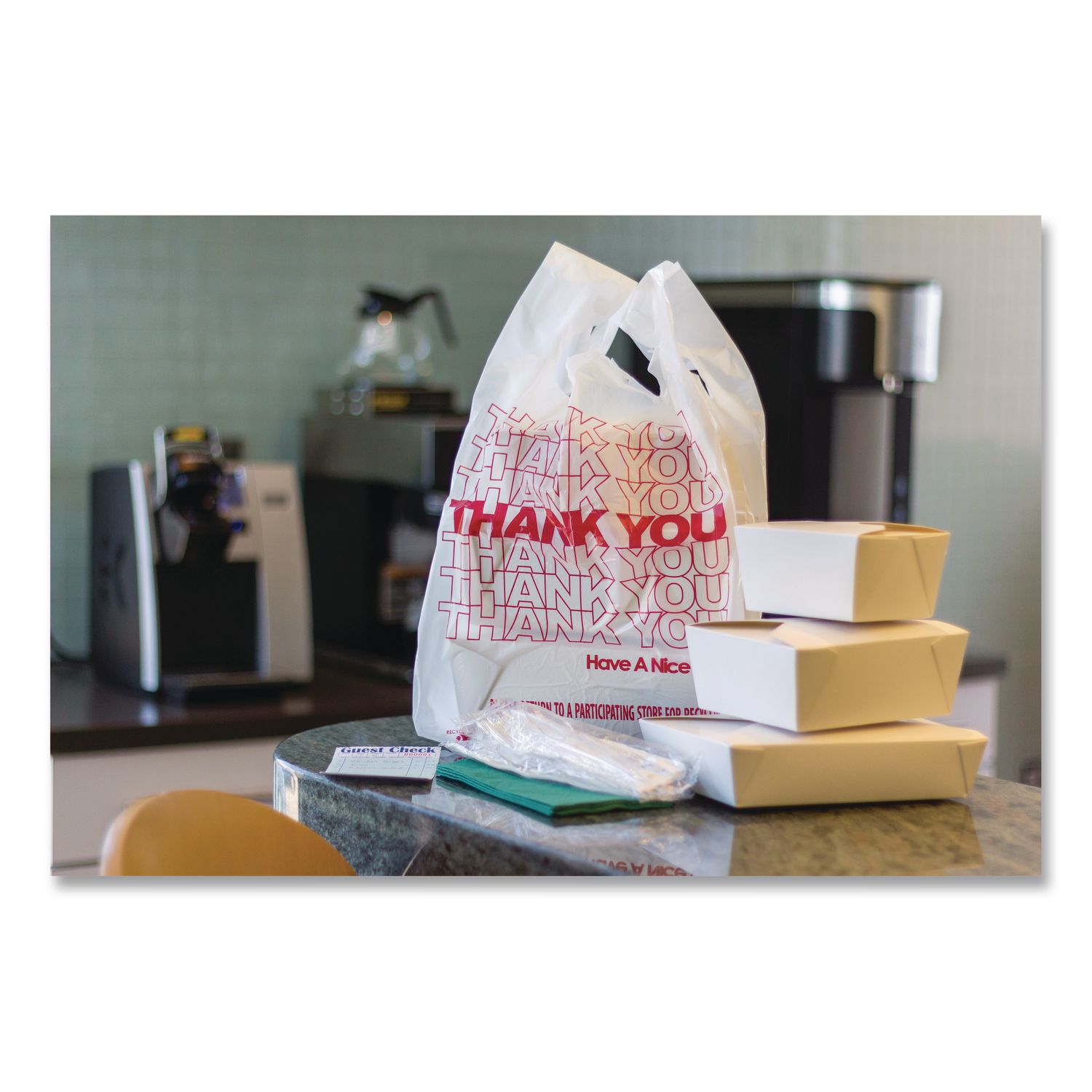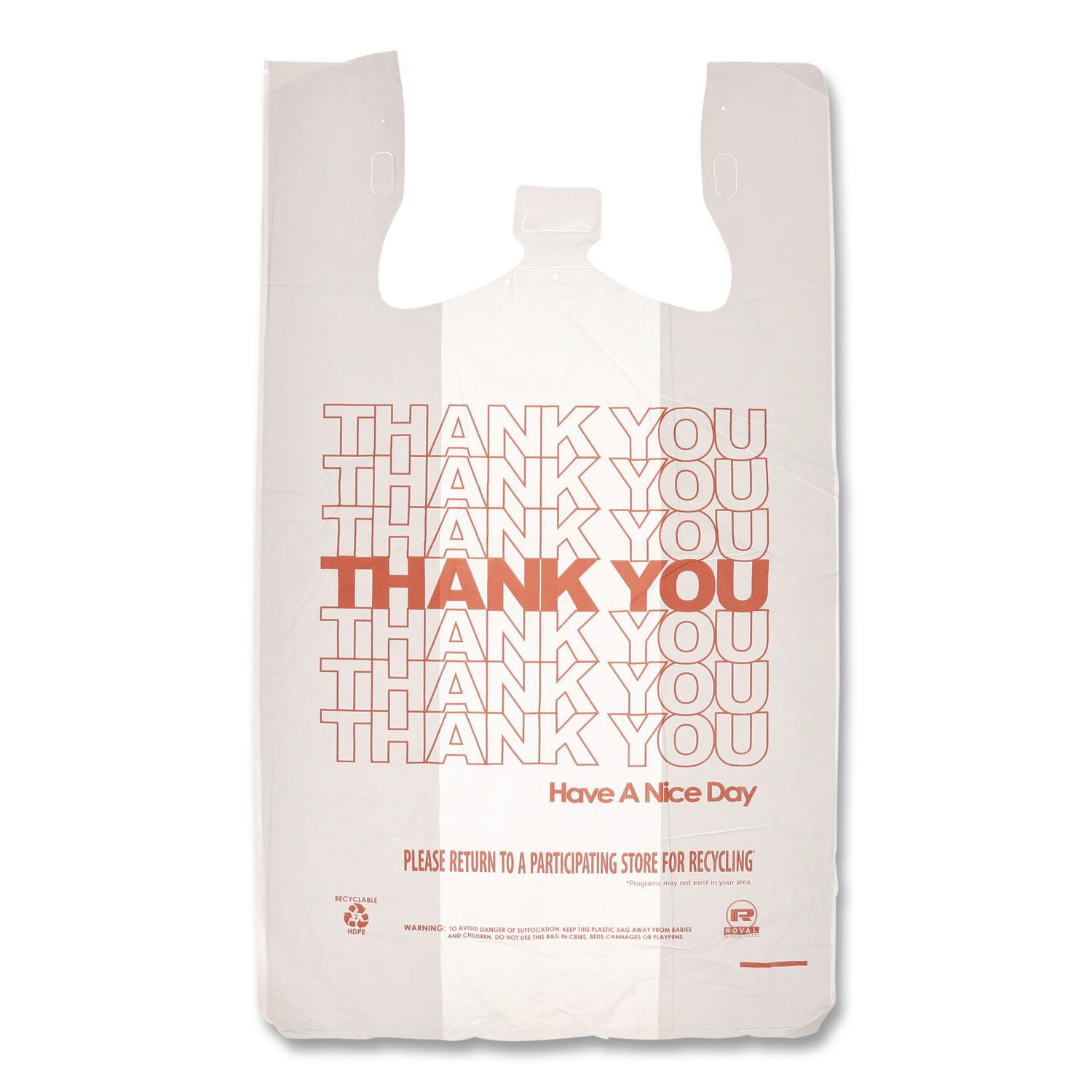 Thank You Bags, Thank You – Have a Nice Day Labeling, Cut-Out Handles, 11.5″ x 6.5″ x 21″, White/Red, 1,000/Carton