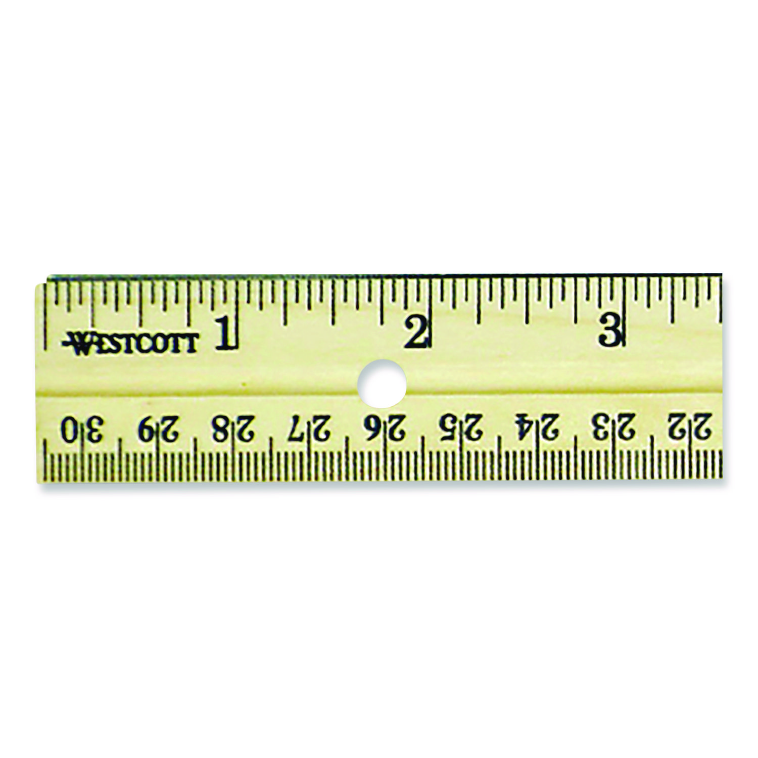 Three-Hole Punched Wood Ruler, Standard/Metric, 12″ (30 cm) Long, Natural Wood, 36/Box