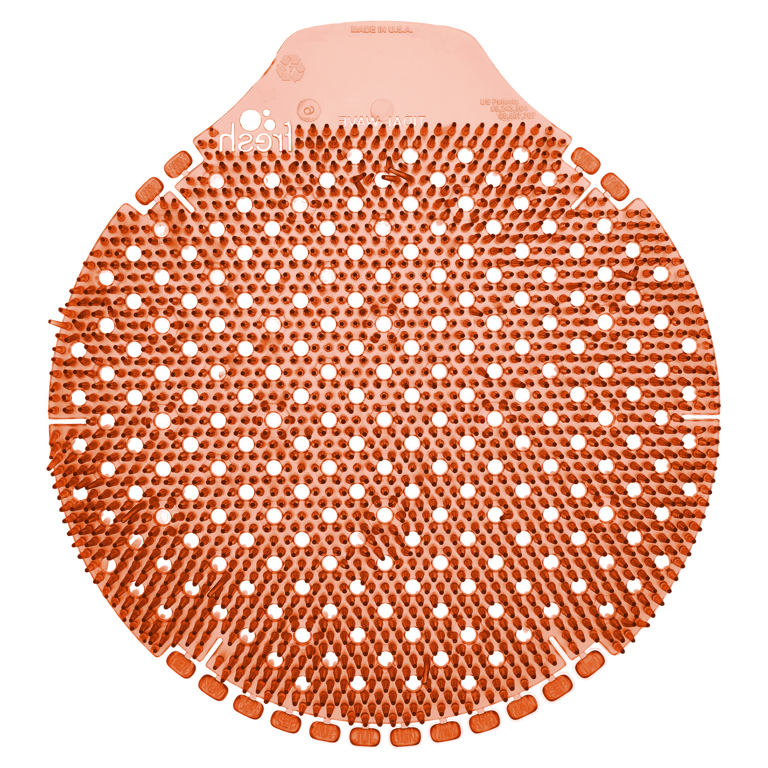 The Tidal Wave Urinal Screen has dual-sided splash control for error-free installation every time. It contains 5x the fragrance of competitors and beneficial bacteria that consume odors at the source, making it the most effective 60-day urinal screen. Deodorizer Type: Urinal Screen; Scent: Mango; Capacity (Weight): 0.42 oz; Color(s): Orange.