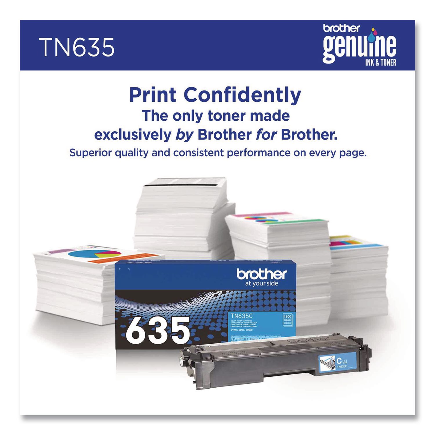Print confidently with Brother TN635 Genuine Standard Yield Toner Cartridges. Expertly engineered, Brother Genuine is the only toner brand recommended for Brother Business Color Laser Printers. With the reassurance of dependable compatibility, this cartridge produces sharp, precise results. A must-have for consistently impressive quality, Brother Genuine Toner is the reliable choice for producing professional documents with ease. When it’s time to replace your printer’s toner cartridge, the Brother Genuine brand provides a worry-free experience. Device Types: Laser Printer; Color(s): Cyan; Page-Yield: 1,800; Supply Type: Toner.