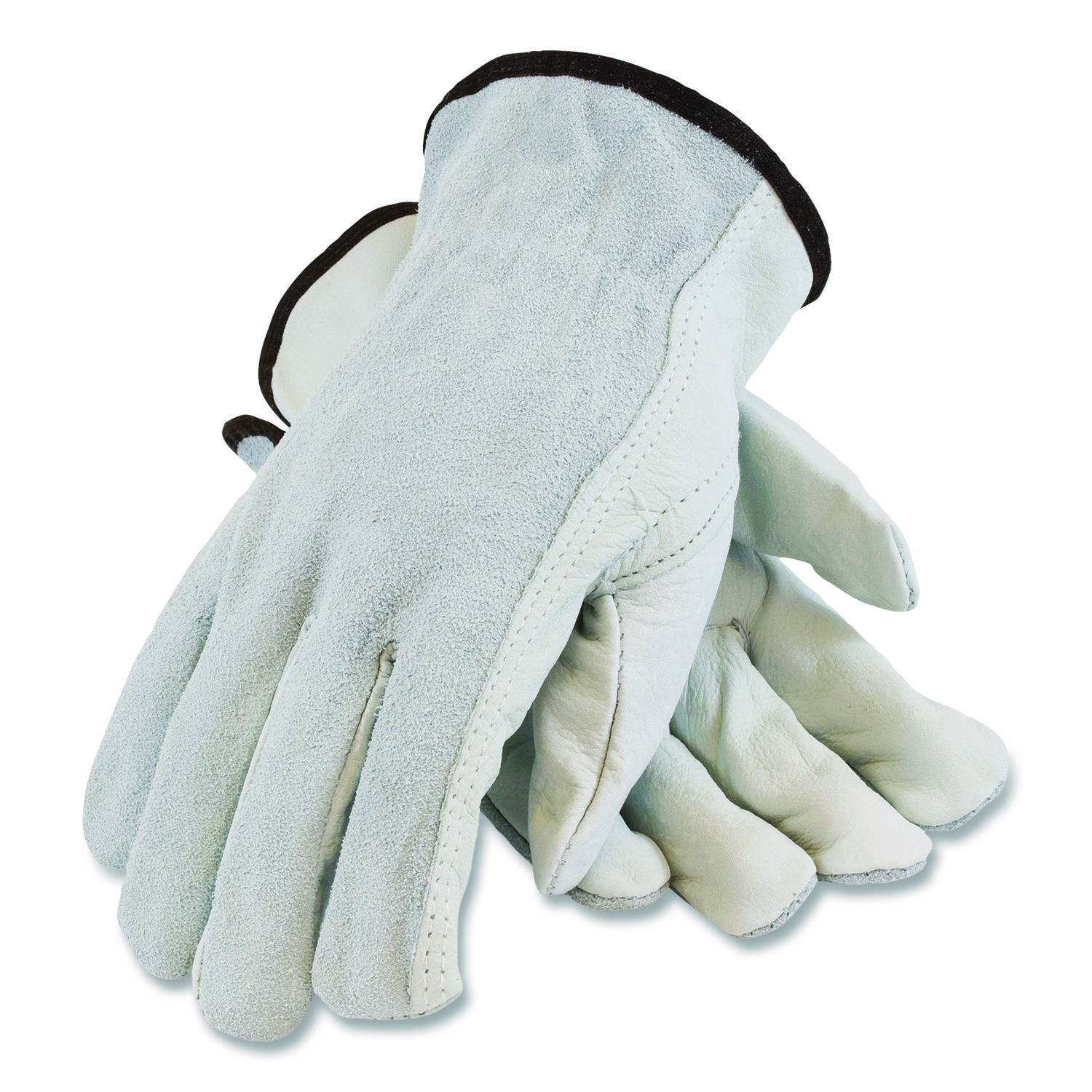 Top-Grain Leather Drivers Gloves with Shoulder-Split Cowhide Leather Back, Gunn Cut, Keystone Thumb, Medium, Gray, Pair