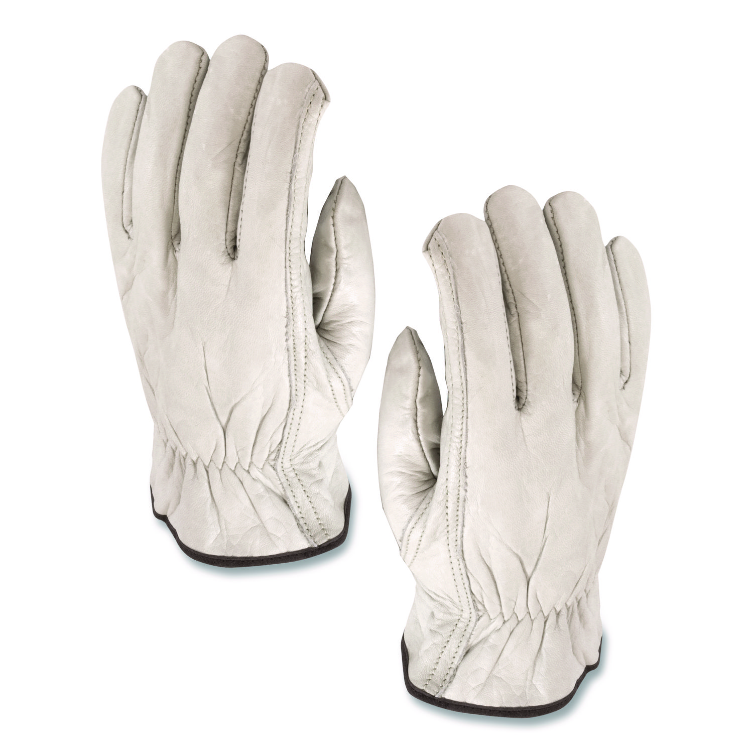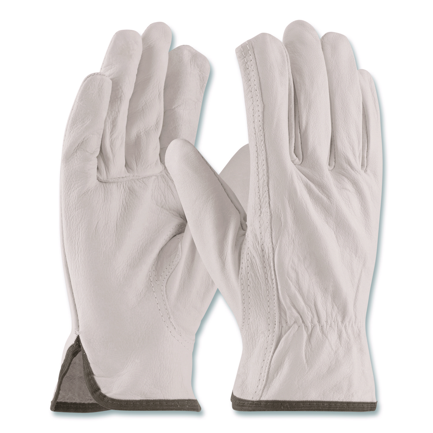 Top-Grain Pigskin Leather Drivers Gloves, Gunn Cut, Keystone Thumb, Large, Gray, Pair