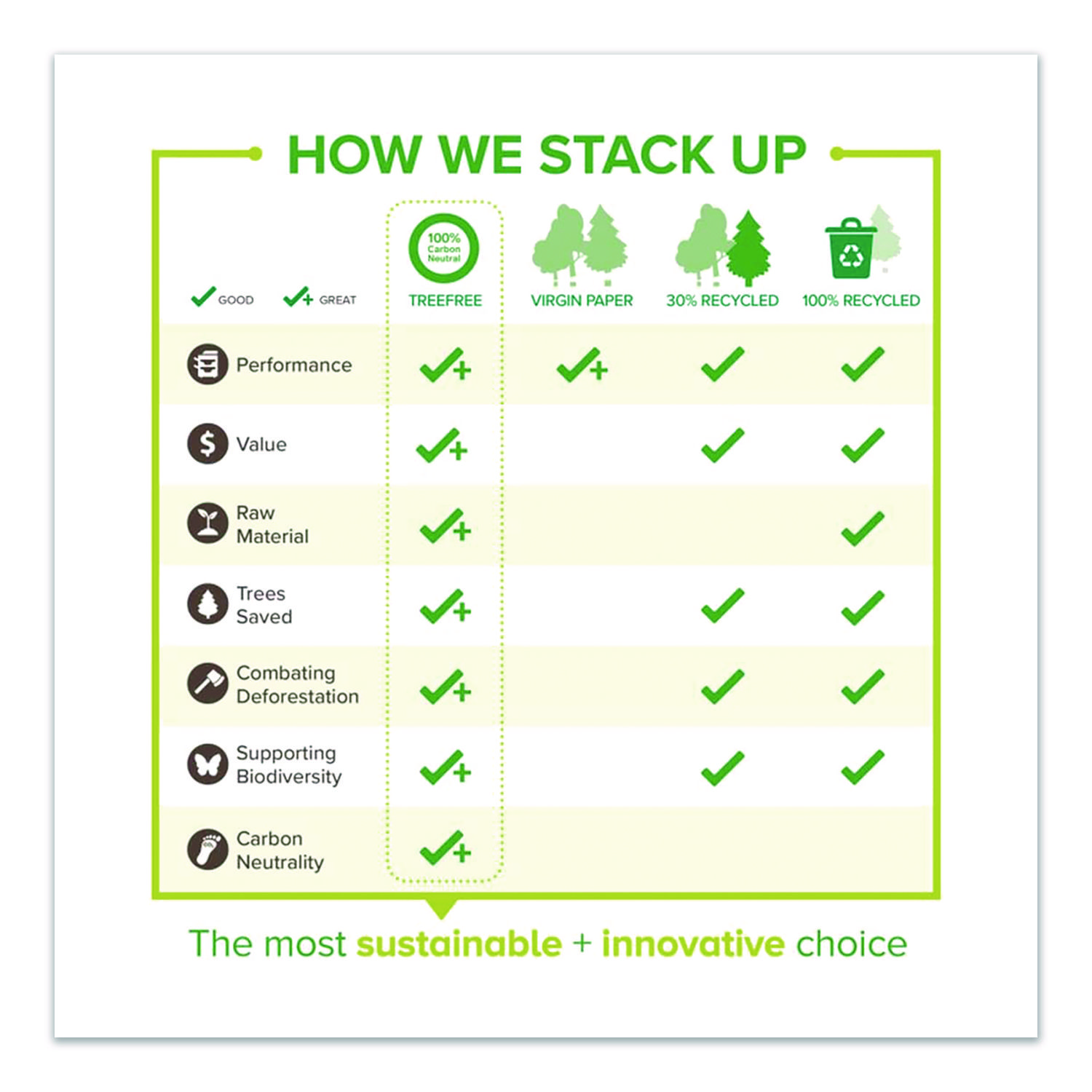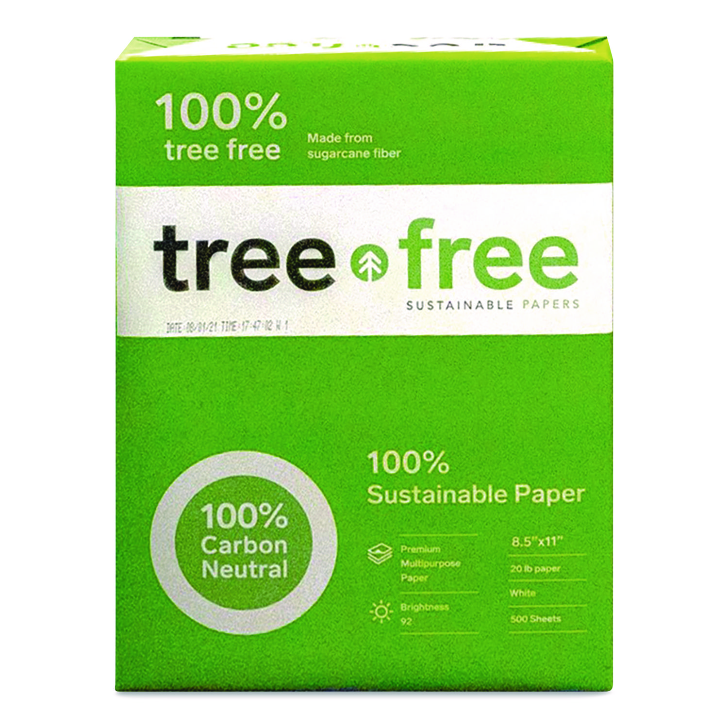 Make a positive impact with TreeZero™ TreeFree Multipurpose Paper, one of the premier tree-free paper brands in America. Though made from sustainable, 100% sugarcane waste fiber, this multipurpose copy/print paper looks, feels and performs just like traditional office paper. Precision-trimmed with a smooth finish, it also provides excellent runnability and jam-free performance in copiers as well as inkjet and laser printers. Manufactured under Elemental Chlorine Free (ECF), acid-free conditions to provide excellent longevity and archival-quality results. Sheet/Roll Size: 8.5 x 11; Paper Basis Weight (lb): 20 lb Bond; Paper Grade (gsm): 75 gsm; Paper/Media Color(s): White.
