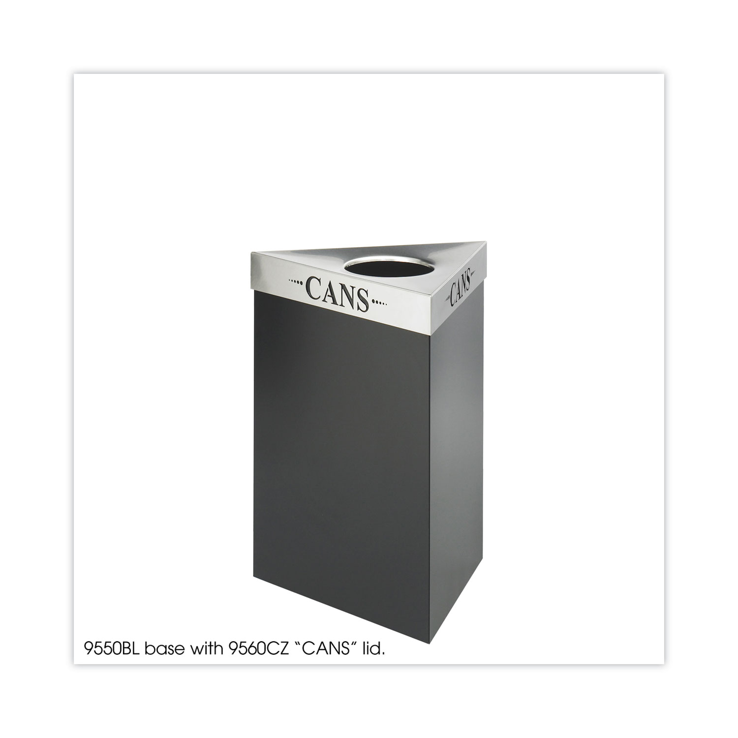 The Trifecta™ Waste Receptacle combines sleek, modern design with functionality to fit seamlessly into any workspace. Its triangular base is part of a flexible design that offers a wide range of configuration options, allowing it to adapt to various environments. The receptacle works perfectly with triangular lids (sold separately), featuring laser-cut inscriptions that make it easy to identify recyclables, promoting an organized space. Designed with convenience in mind, the unique design ensures that bags stay firmly inside the container, maintaining an attractive, tidy appearance. Ideal for offices, break rooms or other high-traffic areas, the Trifecta™ Waste Receptacle is a smart, stylish and efficient solution for waste and recycling management in any setting. Waste Receptacle Type: Indoor Recycling Bin; Material(s): Steel; Application: Indoor Recycling; Interior Volume Capacity: 15 gal.