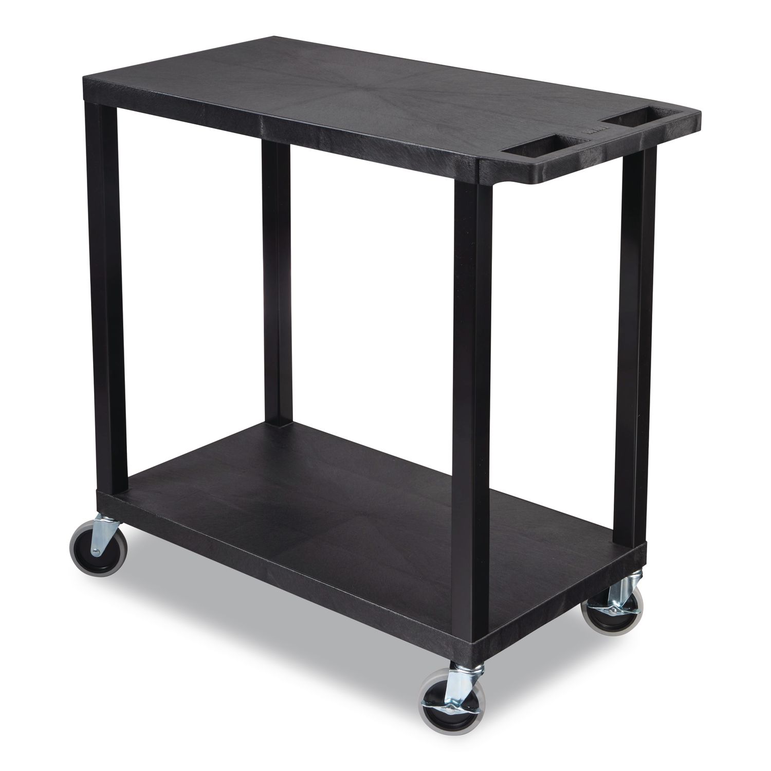TUFFY™ Carts are the original injection molded plastic carts, invented by H. Wilson in 1971. Known for their textured HDPE/PVC construction, swivel casters and angled handles, they’re lightweight yet incredibly strong, tough enough for daily use and built to last shift after shift. The TUFFY™ XL Two-Shelf Utility Cart provides practical shelves to keep items secure during transport. the durable construction, smooth casters and angled handles make them easy to navigate in busy spaces. From classrooms to facilities, TUFFY™ Carts adapt to a wide range of uses. Material(s): High-Density Polyethylyne (HDPE); Polyvinyl Chloride (PVC); Overall Material Type: Plastic; Color(s): Black; Color Family: Black.