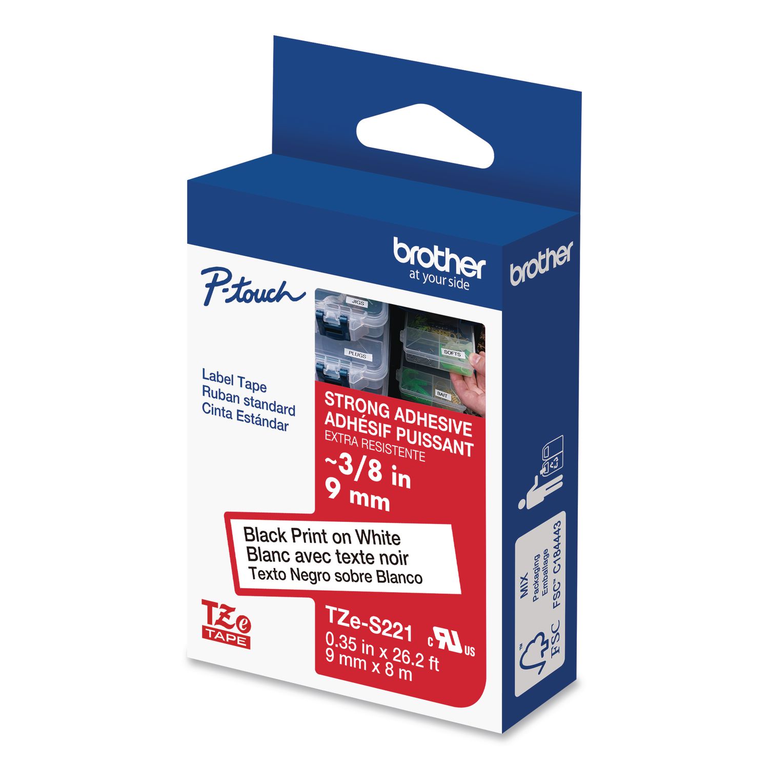 For labeling in harsh environments on a variety of plastics, painted surfaces and textured surfaces. Extraordinary adhesive properties, up to twice as strong as standard laminating labels, make them ideal for the toughest labeling task. Label Size – text: 0.35″ x 26.2 ft; Label Color(s): White; Machine Compatibility: Brother P-Touch® PT-1000, PT-1000BM, PT-1010, PT-1010B, PT-1010NB, PT-1010R, PT-1010S, PT-1090, PT-1090BK, PT-1100, PT1100SB, PT-1100SBVP, PT-1100ST, PT-1120, PT-1130, PT-1160, PT-1170, PT-1180, PT-1190, PT-11Q, PT-1200, PT-1230PC, PT-1280, PT-1280SR, PT-1280VP, PT-128AF, PT-1290, PT-1290BT, PT-1290BT2, PT-1290RS, PT-1300, PT-1400, PT-1500, PT-1500PC, PT-1600, PT-1700, PT-1750, PT-1800, PT-1810, PT-1830, PT-1830C, PT-1830SC, PT-1830VP, PT-1880, PT-1880C, PT-1880SC, PT-1880W, PT-1890C, PT-1890SC, PT-1890W, PT-18R, PT-18RKT, PT-1900, PT-1910, PT-1950, PT-1960, PT-200, PT-2030, PT-2030AD, PT-2030VP, PT-2100, PT-2110, PT-2200, PT-2210, PT-2300, PT-2310, PT-2400, PT-2410, PT-2430PC, PT-2500PC, PT-2600, PT-2610, PT-2700, PT-2710, PT-2730, PT-2730VP, PT-300, PT-300B, PT-310, PT-310B, PT-320, PT-330, PT-340, PT-350, PT-3600, PT-4000, PT-520, PT-530, PT-540, PT-550, PT-580C, PT-6100, PT-7100, PT-7500, PT-9200DX, PT-9200PC, PT-9400, PT-9500PC, PT-9600, PT-9700PC, PT-9800PCN, PT-D200, PT-D200BT, PT-D200DA, PT-D200MA, PT-D200SA, PT-D210, PT-D400, PT-D400AD, PT-D400VP, PT-D450, PT-D600, PT-D600VP, PT-E100, PT-E300, PT-E500, PT-E550W, PT-H100, PT-H300, PT-H300LI, PT-H500LI, PT-P700, PT-P750W, PT-P750WVP, PT-P900W, PT-P950NW, ST-1150, ST-1150DX, ST-5; Text/Label Colors: Black Print on White Tape.