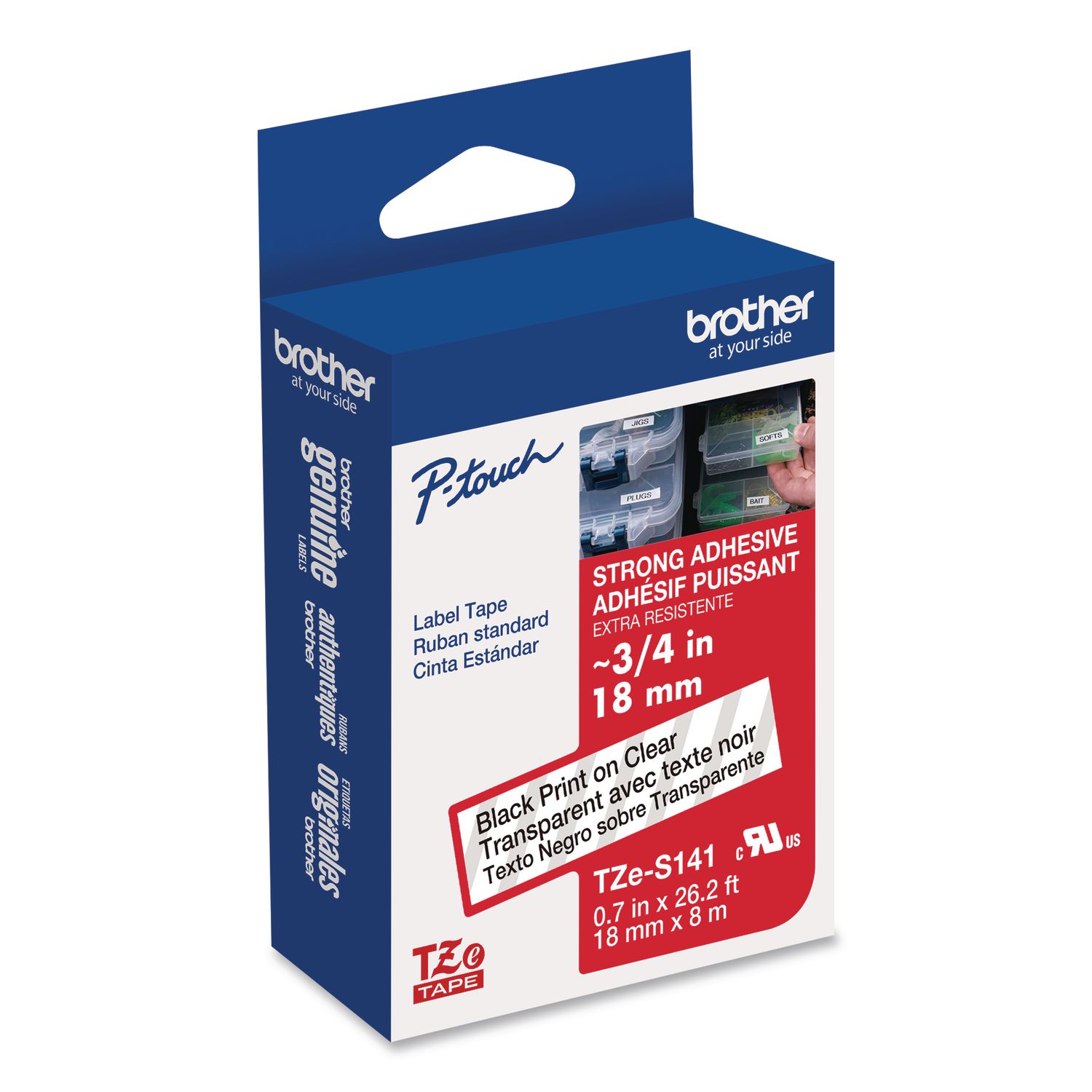 TZe Extra-Strength Adhesive Laminated Labeling Tape, 0.7″ x 26.2 ft, Black on Clear
