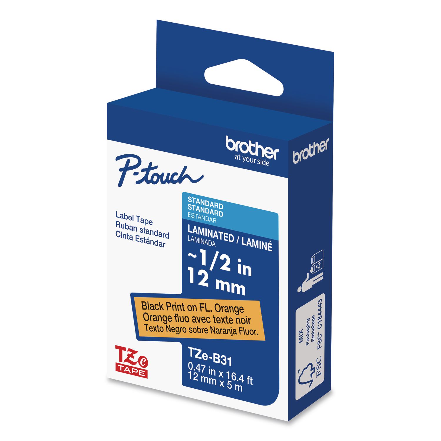 Brother label tape is compatible with P-Touch label printers and is perfect for labeling kitchen, shelving, and supply cabinets. The labels are easy to print and apply to a variety of surfaces. The split back of the P-Touch label tape can be removed with ease, which makes Brother TZe replacement label tape simple to peel and apply to tables and shelves made of steel, wood, plastic and more. This product is a Brother Genuine replacement product, which will help reduce the possibility of damage to the P-touch label maker. Using Brother Genuine supplies delivers quality results and protects your P-touch from damage. Label Size – text: 0.47″ x 26.2 ft; Label Color(s): Orange; Machine Compatibility: Brother P-Touch® Label Makers that use 1/2″ TZ & TZe Tapes; Text/Label Colors: Black Print on Orange Tape.