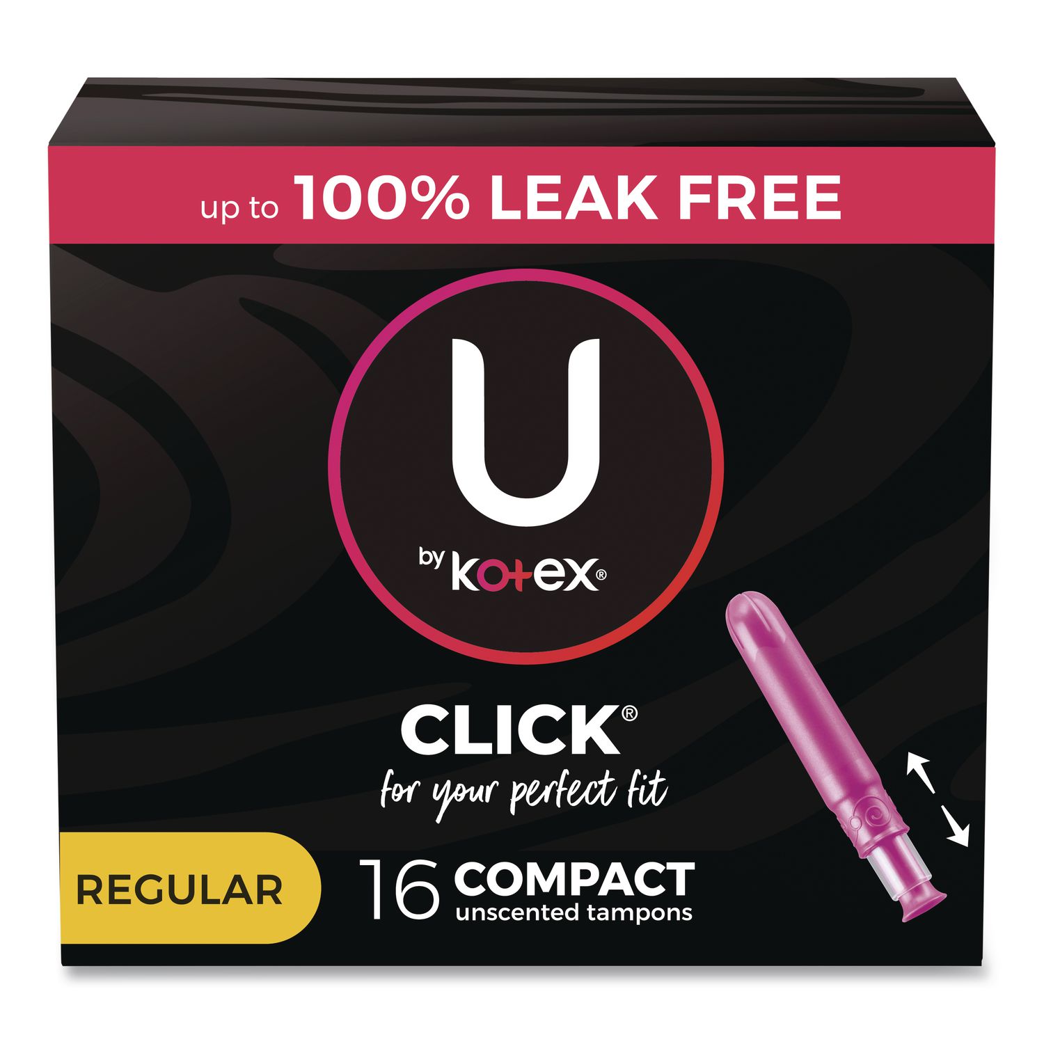 U by Kotex Click Compact Tampons, Regular Absorbency, 16/Pack, 8 Packs/Carton
