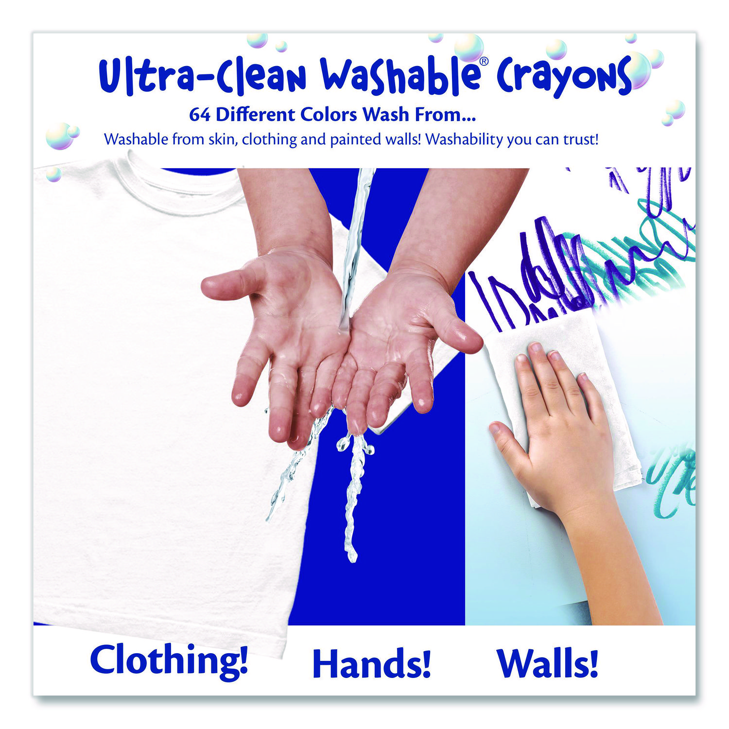 Perfect for school and at-home crafts, these Ultra Clean Washable Crayons are designed with both creativity and convenience in mind. Featuring vibrant colors that children love, these crayons deliver smooth, bold results for all their art projects. The Ultra Clean formula ensures that each vivid hue washes easily from skin, painted walls, and most washable clothing, making cleanup a breeze for parents and teachers alike. Durable and long-lasting, these quality crayons are perfect for classrooms, homework, and creative play. Add them to your back-to-school list and enjoy worry-free coloring without stains or mess—just pure, colorful fun for kids of all ages! Larger Size—Easier for small hands to grip when coloring or drawing. Number of Colors: 16; Color(s): Assorted; Color Family: Multicolor; Color Assortment: 16 Assorted Colors.