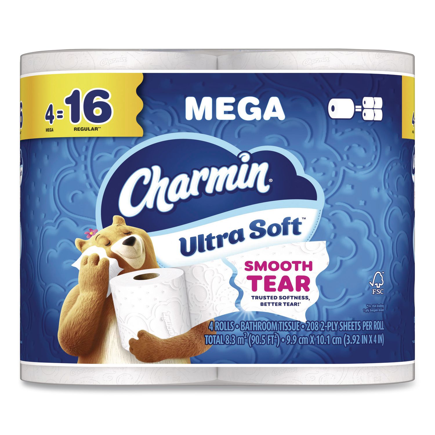 Outstanding quality, softness and strength. Diamond weave texture. Safe for sewer and septic systems. More absorbent so you use less. Mega Roll. Tissue Type: Toilet; Number of Plies: 2; Number of Sheets: 208/Roll; Width: 4″.