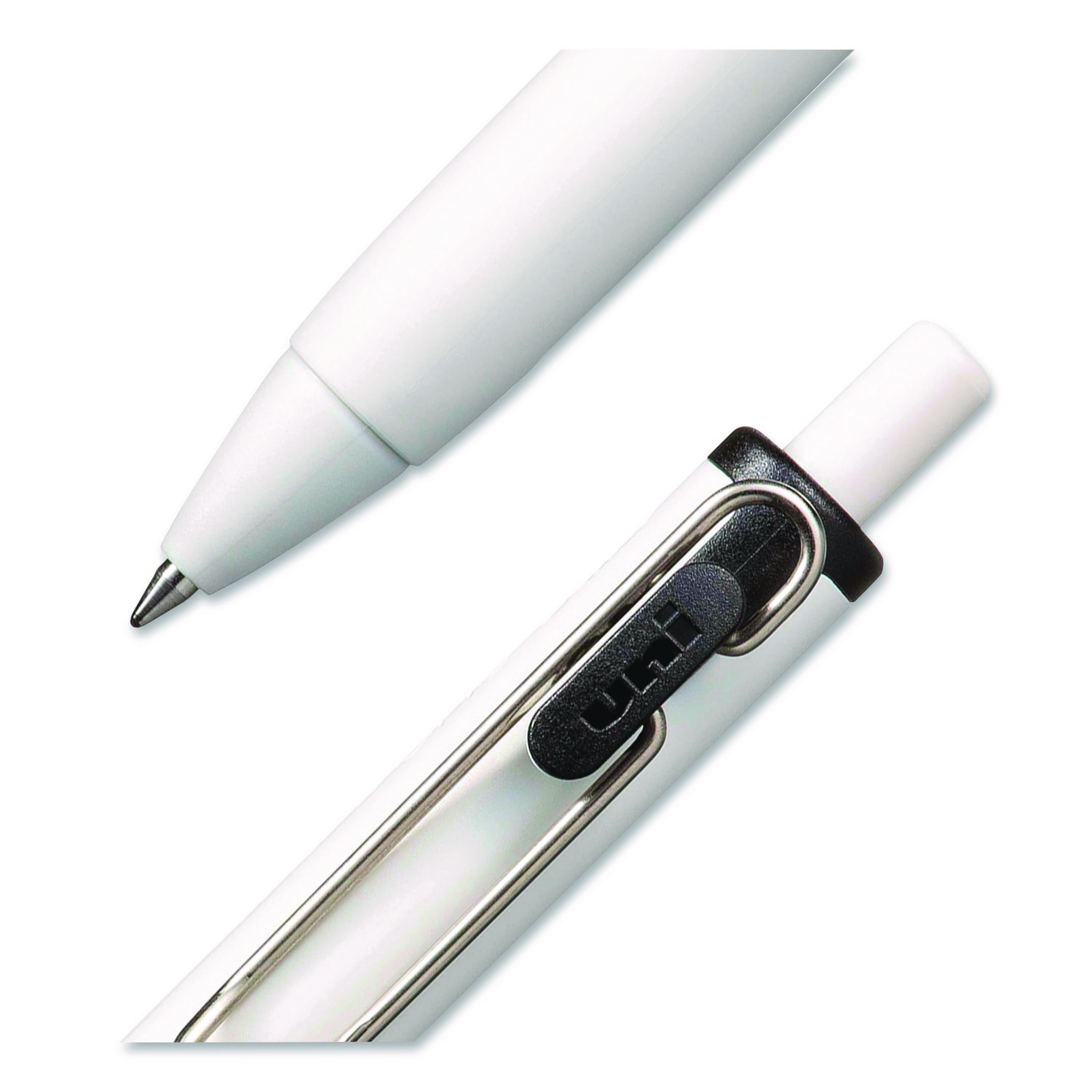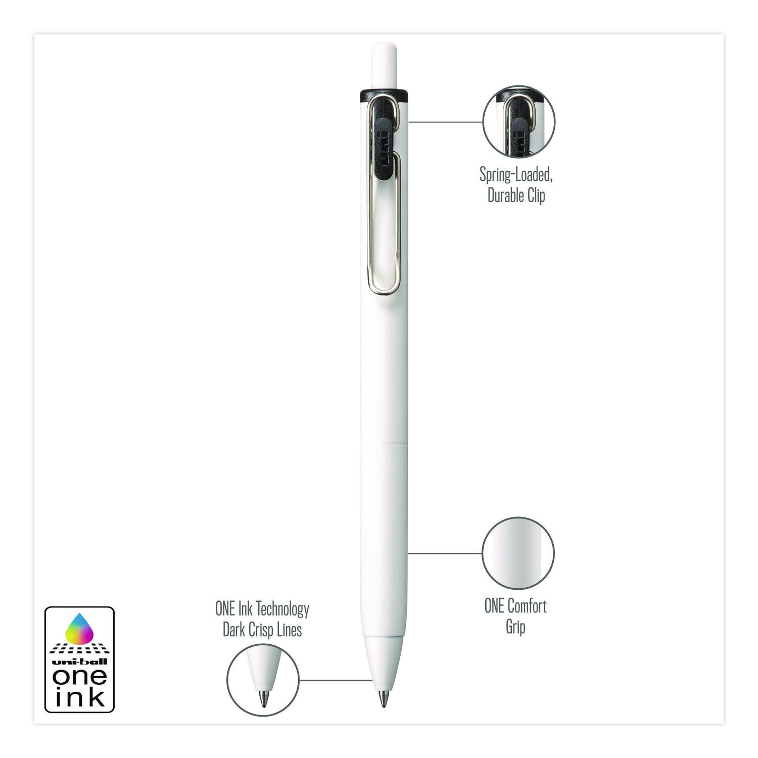 uniONE Gel Pen, Retractable, Medium 0.7 mm, Black Ink, White/Black Barrel, Dozen