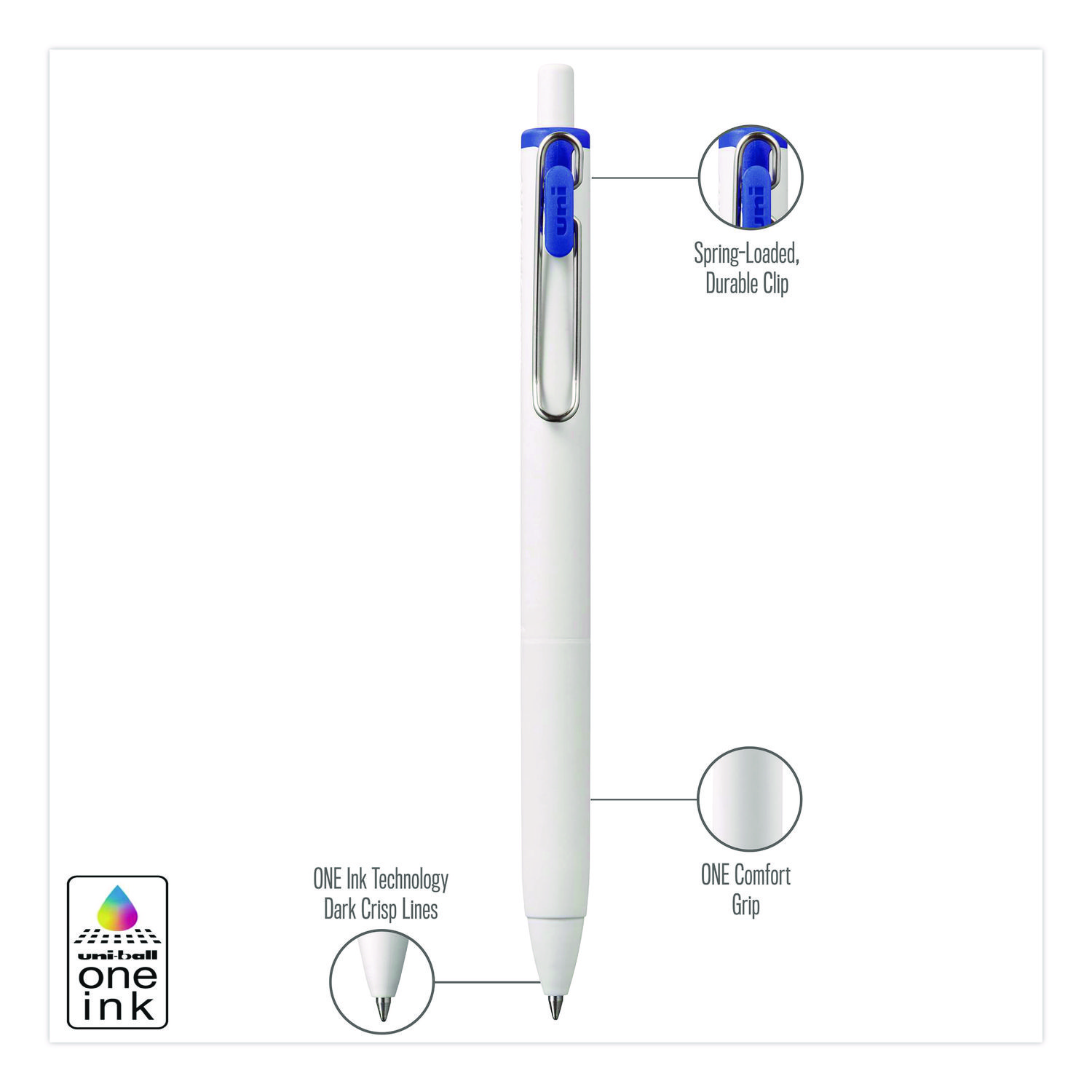 uniONE Gel Pen, Retractable, Medium 0.7 mm, Blue Ink, White/Blue Barrel, Dozen