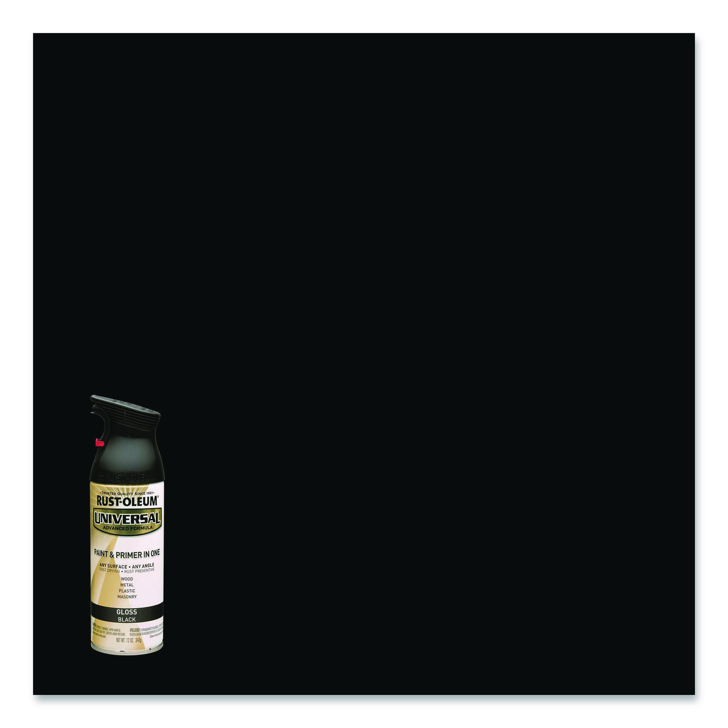Universal® Premium enamel sprays provide long-lasting protection and durability. These sprays apply easily, provide excellent coverage and dry fast to a tough attractive finish. Ideal for plastic, wood, metal, wicker and aluminum. Features a comfort grip trigger that reduces fatigue caused by continuous spraying and an any-angle tip which allows you to spray at any angle. Paint Sub-Category: Spray Paint; Intended Application Environment: Interior/Exterior; Finish/Sheen: Gloss; Color(s): Black.