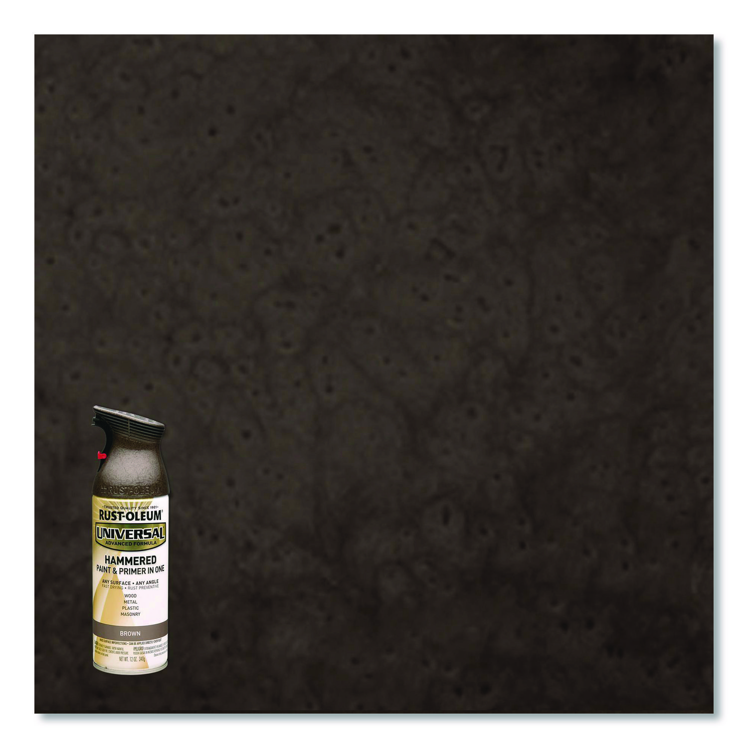 Universal® Premium enamel sprays provide long-lasting protection and durability. These sprays apply easily, provide excellent coverage and dry fast to a tough attractive finish. Ideal for plastic, wood, metal, wicker and aluminum. Features a comfort grip trigger that reduces fatigue caused by continuous spraying and an any-angle tip which allows you to spray at any angle. Paint Sub-Category: Spray Paint; Intended Application Environment: Interior/Exterior; Finish/Sheen: Hammer; Color(s): Brown.
