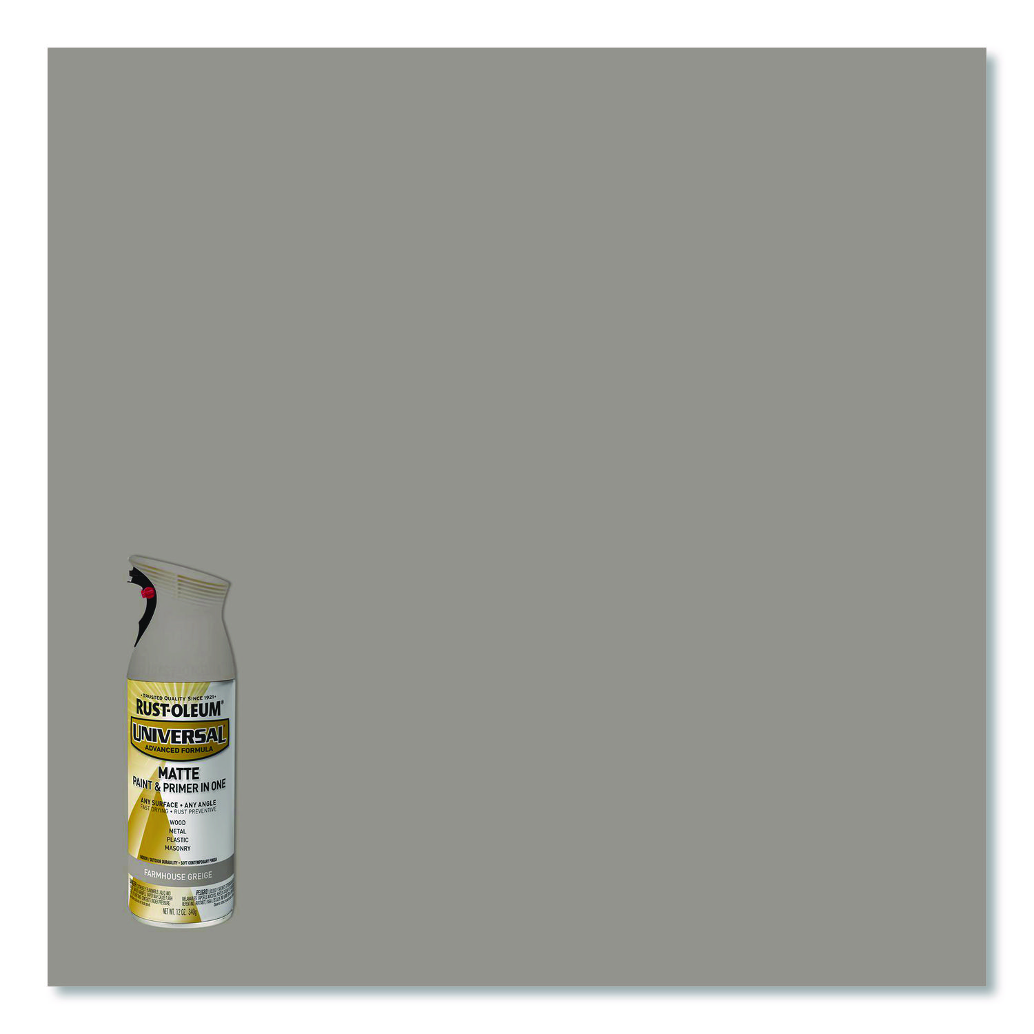 Universal® Premium enamel sprays provide long-lasting protection and durability. These sprays apply easily, provide excellent coverage and dry fast to a tough attractive finish. Ideal for plastic, wood, metal, wicker and aluminum. Features a comfort grip trigger that reduces fatigue caused by continuous spraying and an any-angle tip which allows you to spray at any angle. Paint Sub-Category: Spray Paint; Intended Application Environment: Interior/Exterior; Finish/Sheen: Matte; Color(s): Greige.