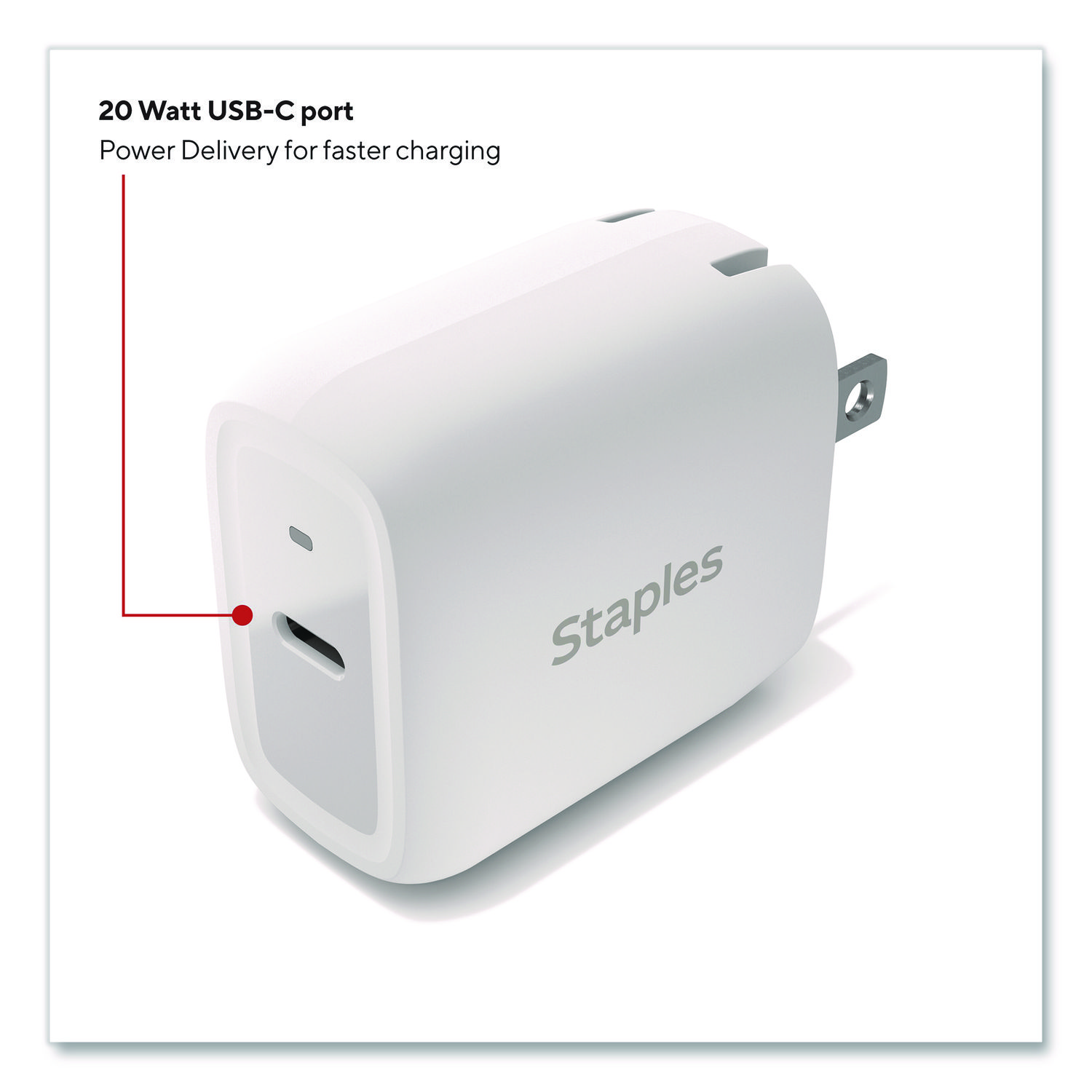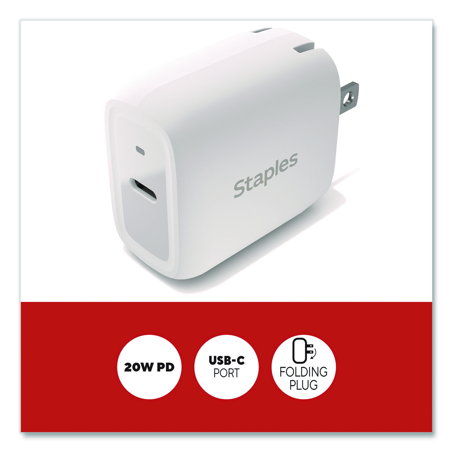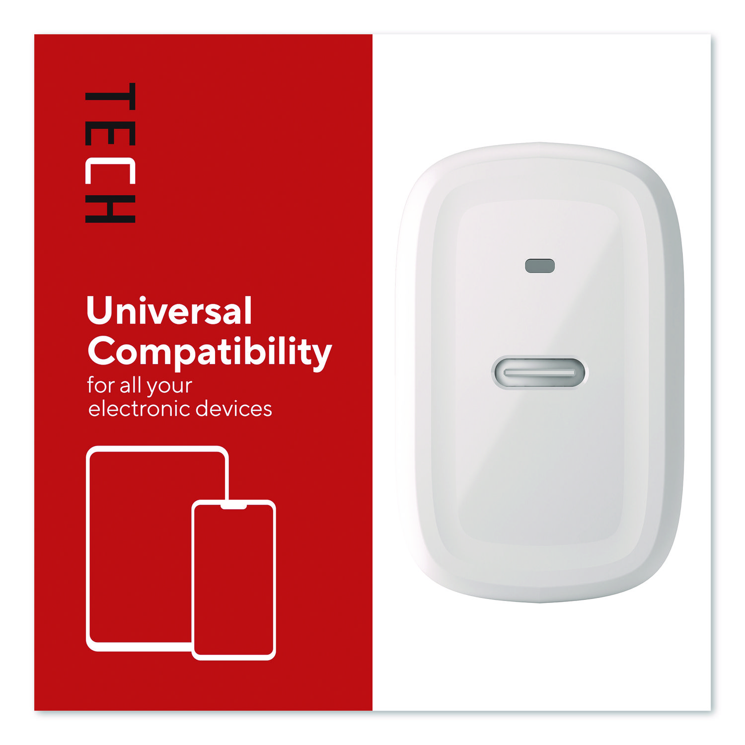 Upgrade your charger to power your smartphone, tablet and other devices with this USB-C charger. The foldable wall plug makes this charger easily portable and reduces damage to prongs. For Device Type: Mobile Devices; Adapter/Charger Type: Wall Charger; Power Source(s): AC Wall Outlet; Connector/Port/Interface: USB-C.