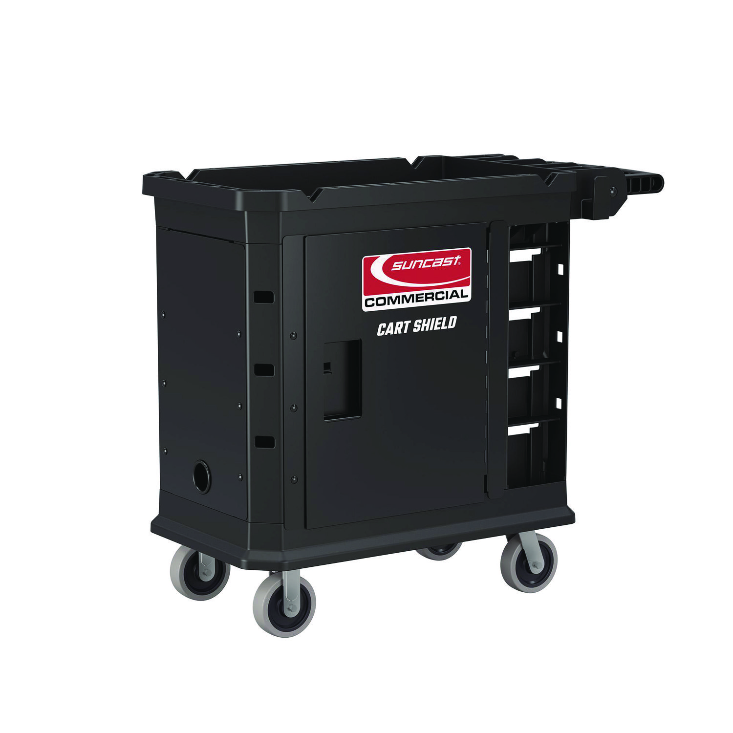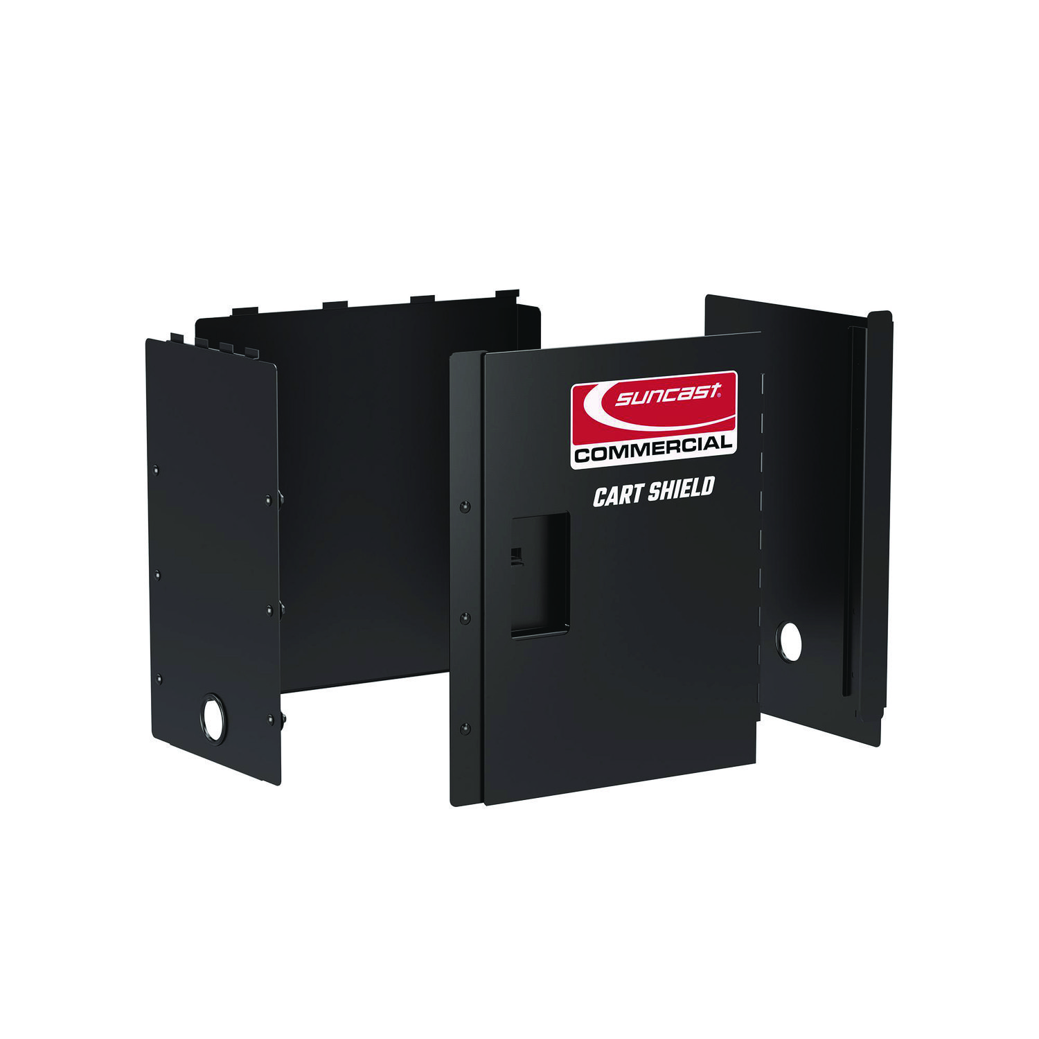 The cart shield includes four steel panels that are easy to install on your Suncast Commercial utility carts. You can easily run power cords to the inside, through a small port, while still keeping your tools for your job inside and out of sight. Accessory Type: Door; Width: 3.75″; Depth: 25.59″; Height: 27.39″.