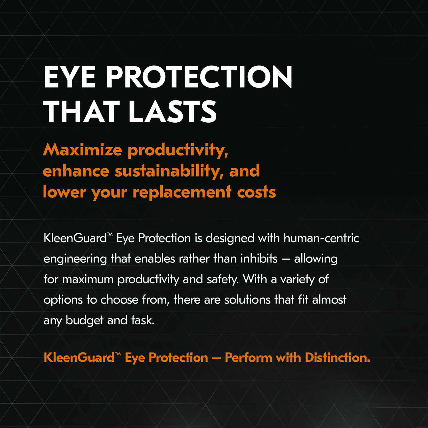 KleenGuard™ Personal Protective Equipment (PPE) enables rather than inhibits allowing for maximum productivity and safety for you and your employees. For eye protection that’s both economical and reliable, you can trust Visio™ Safety Glasses from KleenGuard™. The protective eyewear features a sleek design with three-point extendable temples, which provide a customized fit for enhanced comfort. Lenses are hard coated for scratch-resistance and longer life. Polycarbonate lenses provide 99.9% UVA/UVB/UVC protection. When you want to give your workers comfortable, sporty eye protection at an economical price point, the KleenGuard™ Visio™ Glasses are a smart choice. Making the right Personal Protection choice is difficult. Perform with distinction with KleenGuard™ Personal Protective Equipment (PPE). Safety Glasses Style: Half Frame; Frame Color: Silver; Arm Color: Silver; Frame/Arm Material: Plastic.