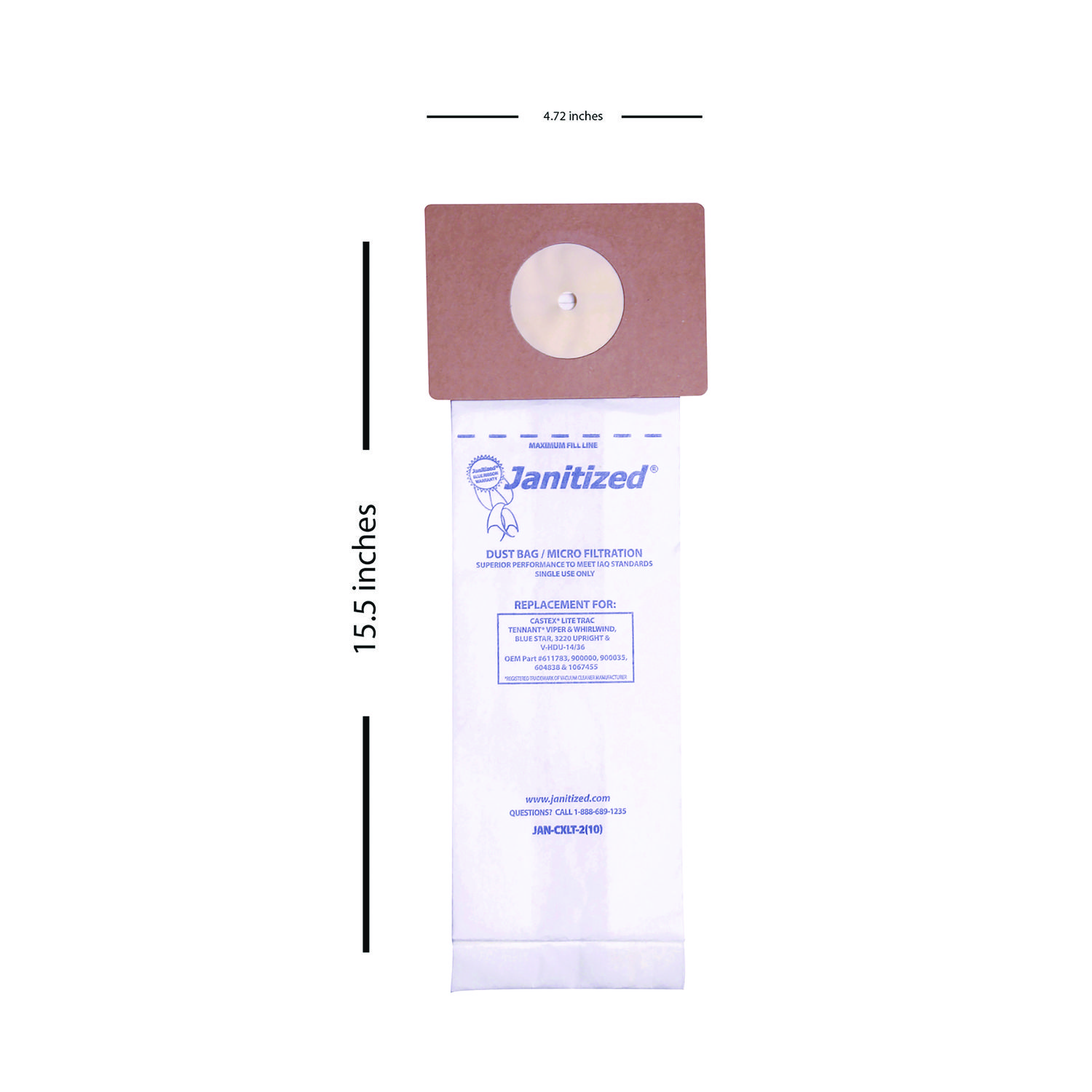 Made with 2-ply combination paper and meltblown micro filter. Designed for the cleaning professional who demands high-performance parts at a competitive price. Meets or exceeds OEM standards. For Nobles/Tennant/Castex. OEM/Compatible: Compatible; For Use With: Nobles Lite Trac/Tennant Viper & Whirlwind Paper Bag; OEM #611783; Quantity: 100/Carton.