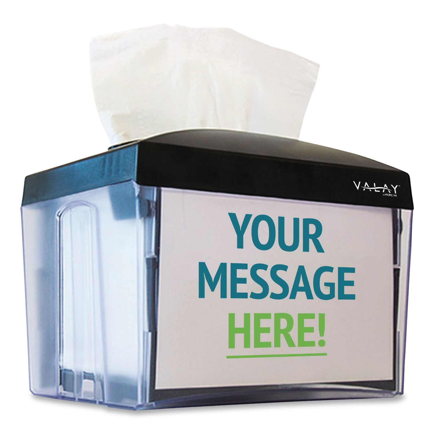 Valay® Interfolded Napkin Systems, reduce napkin consumption and waste by 25% compared to traditional food service napkin dispensers. Combining form and function, dining settings of all kinds can benefit from the high quality, one-at-a-time napkin dispenser. This Valay® Table Top Napkin Dispenser is compatible with a variety of interfolded napkins, which makes it great for restaurants, cafeterias and more. Additionally, the two-sided message panel can be used for advertising purposes. Color(s): Black; Width: 6″; Depth: 6.5″; Height: 8″.