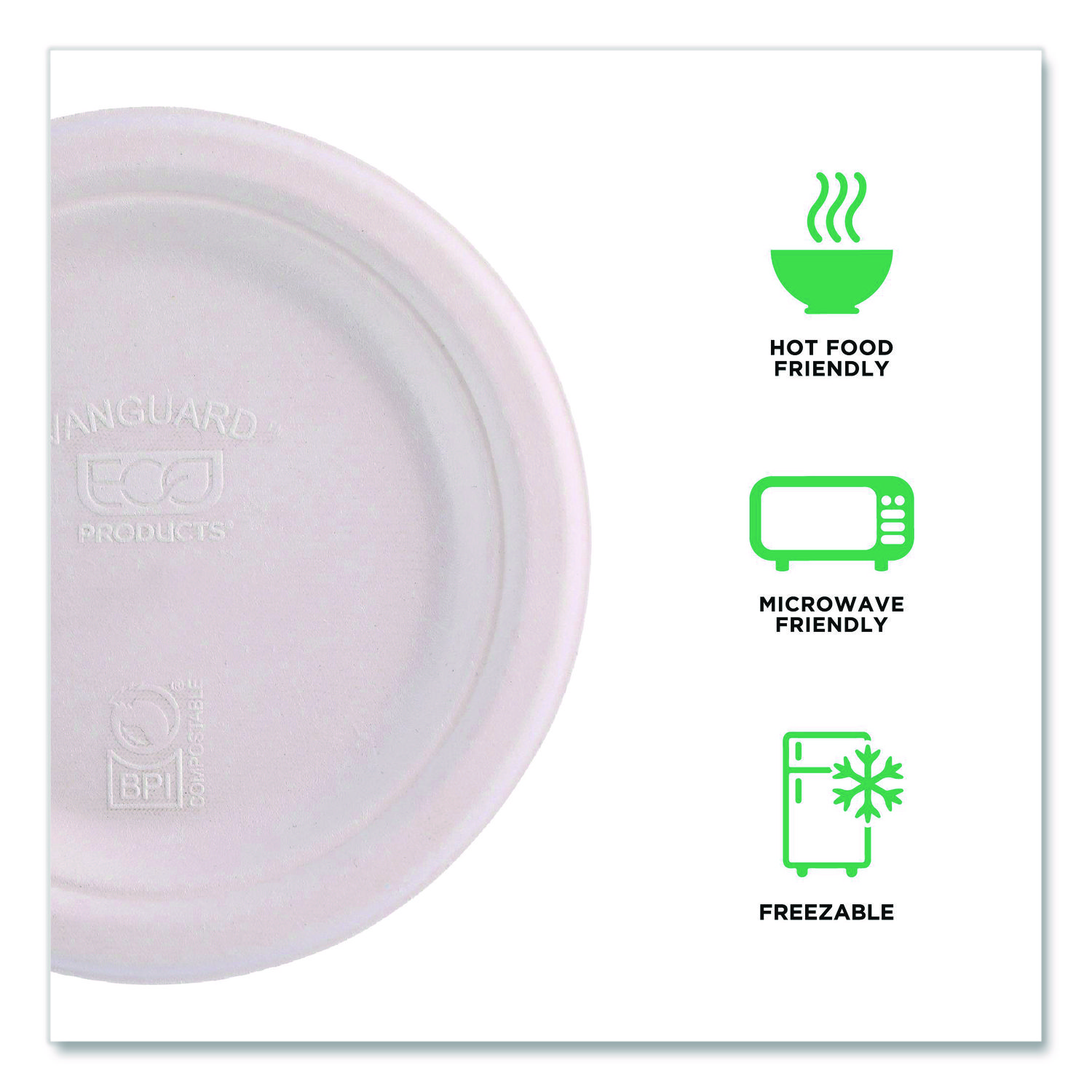 Vanguard Renewable and Compostable Sugarcane Plates, 7″ dia, White, 1,000/Carton