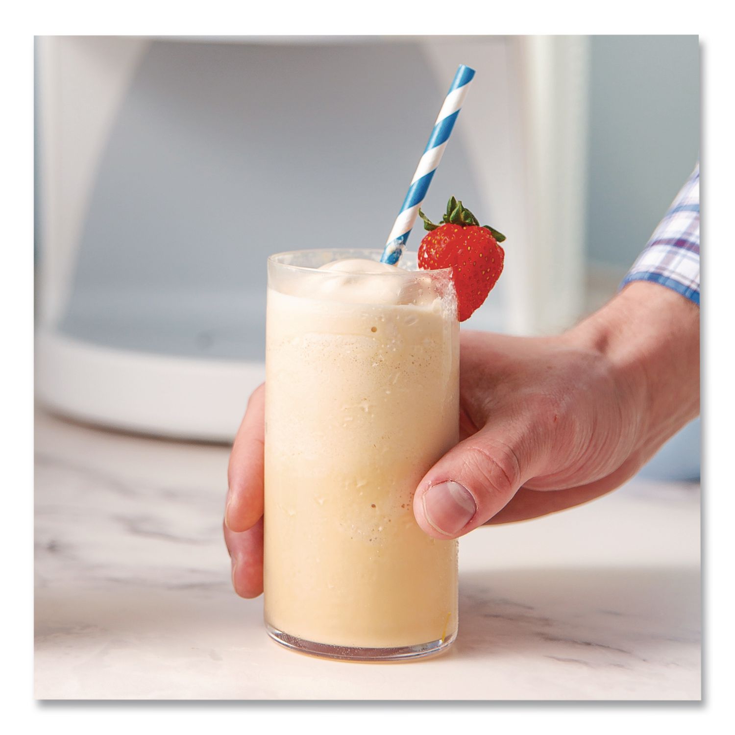 Our Vanilla Protein Shake is a healthy, satisfying option packed with 12 g of milk protein isolate and no added sugar. Smooth, creamy and subtly sweet, it’s a delicious way to fuel your day—perfect as a post-workout boost or anytime snack. Single Serve Frozen Protein Shake Pods offer quick and effortless preparation—just insert into a ColdSnap® machine (required). No freezer storage needed until ready to use. Beverage Type: Protein Shake; Flavor: Vanilla; Product Packaging: Single Serve Pod; Capacity (Weight): 8.1 oz.