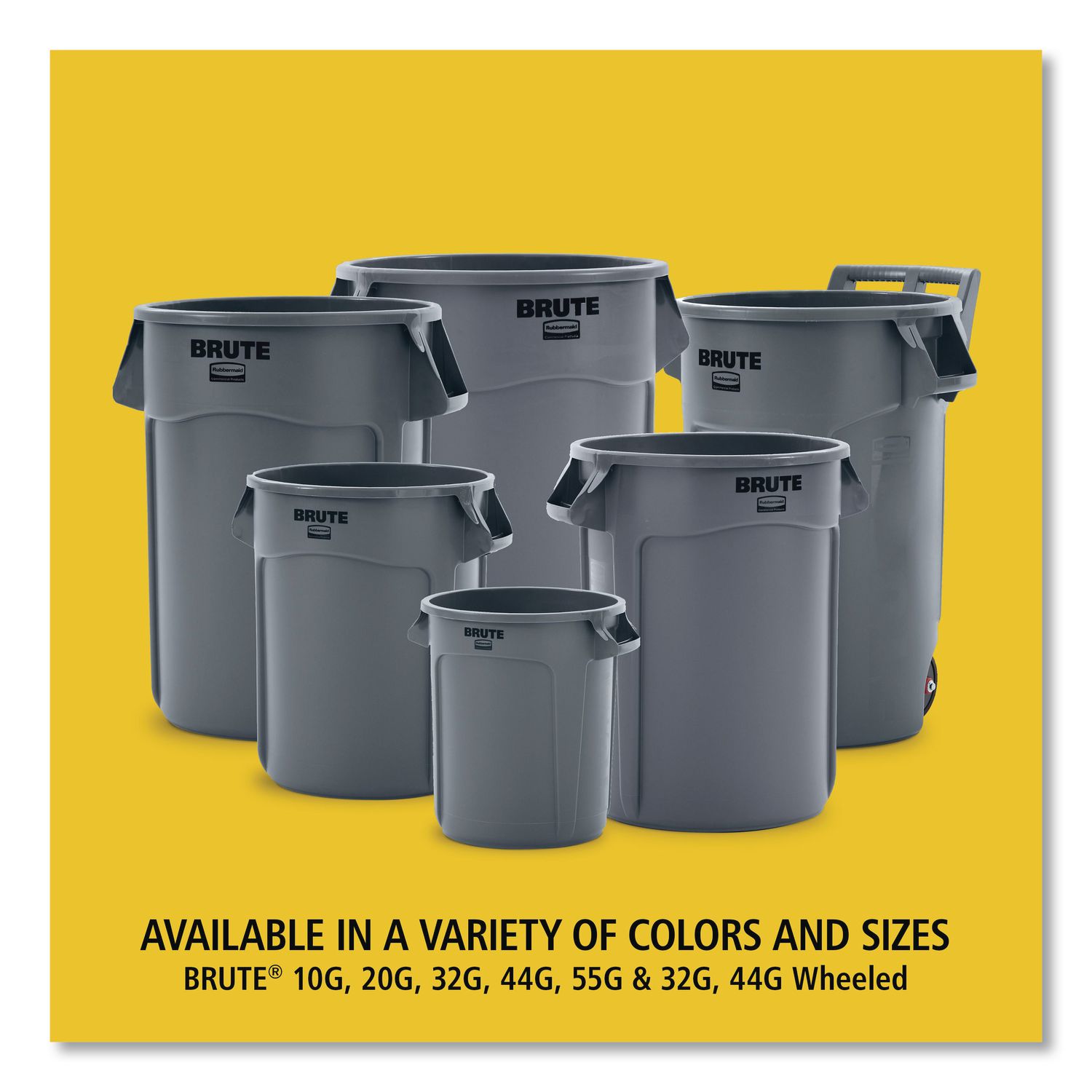 Vented Round Brute Container, 44 gal, Plastic, Yellow