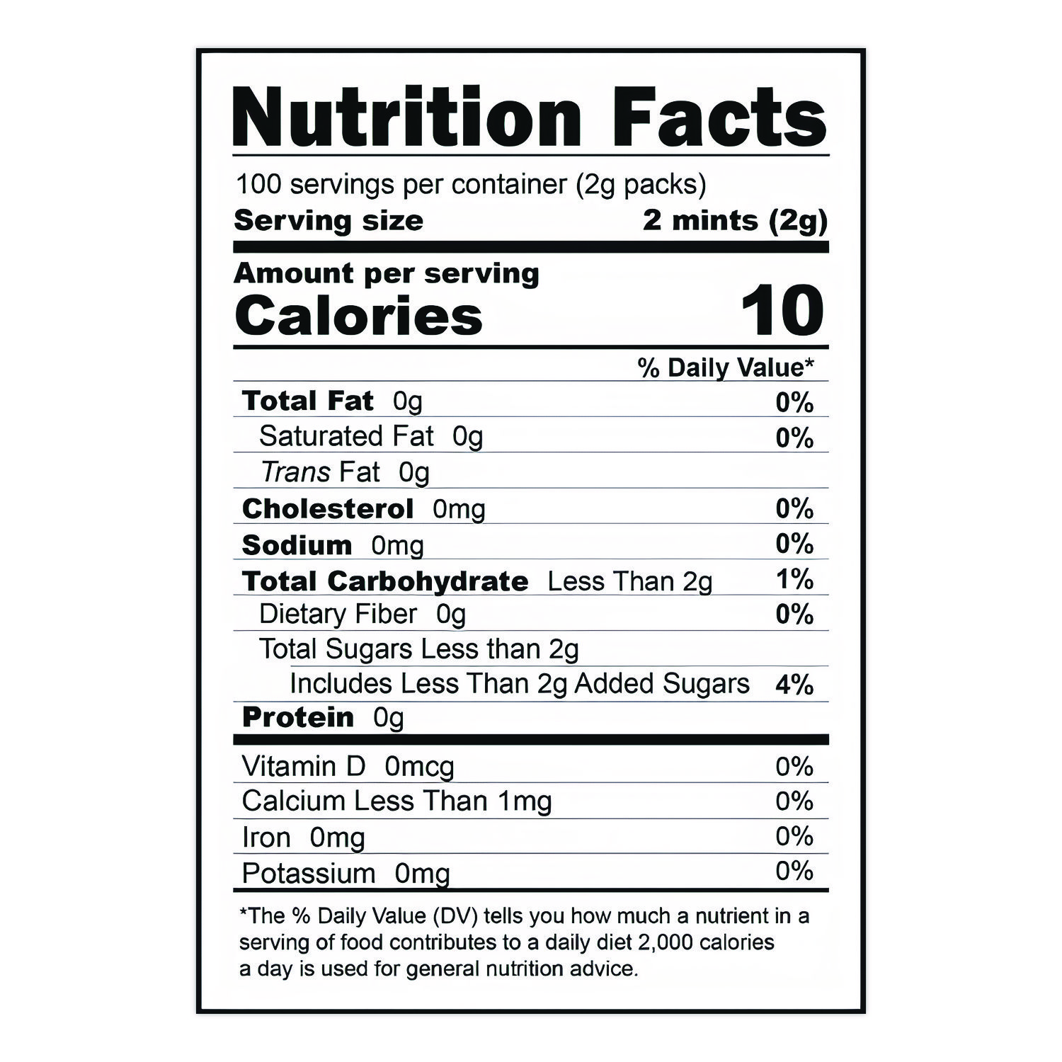 Enjoy refreshing mint flavors. Delicious organic ingredients. Ideal after-meal treat. Tasty and delectable. Food Type: Mints; Flavor: Wintergreen; Capacity (Weight): 0.7 oz; Product Packaging: Individually Wrapped.