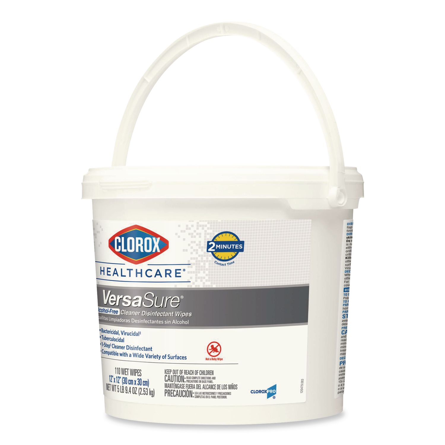 Clorox Healthcare® VersaSure Cleaner™ Disinfectant Wipes kill over 40 pathogens quickly on a broad range of surfaces. These strong and durable clothlike wipes are your alcohol-free solution to cleaning and disinfecting. VersaSure wipes are EPA registered to kill pathogens on hard surfaces in as fast as 30 seconds for most bacteria and viruses, including mumps, measles, MRSA and tuberculosis. These one step disinfecting wipes meet EPA efficacy testing requirements for hospital disinfection, making them great for daily use in your healthcare facility. Designed for patient and staff comfort, the alcohol free quat formula is made with no harsh chemical odors, fumes or added fragrances. The nonwoven wipe does not leave lint on surfaces, and the larger wipe covers more surface area with less effort. Intended for use in healthcare settings. 12″ x 12″ Wipes—Large size wipes are great for cleaning large areas. Towel/Wipe Type: Cleaning/Disinfecting Wipes; Applicable Material: Aluminum; Baked Enamel; Brass; Chrome; Copper; Corian; Finished Wood; Formica; Galvanized Steel; Glass; Glazed Porcelain; Laminate; Linoleum; Marble; Metal; Naugahyde; Painted Metal; Painted Wood; Plastic; Plastic Laminate; Plexiglass; Porcelain Enamel; Rubber; Sealed Fiberglass; Sealed Granite; Sealed Wood; Silver; Stainless Steel; Synthetic Marble; Treated Wood; Vinyl Tile; Wood; Material(s): Nonwoven Fiber; Chemical Compound: Ethanolamine; Quaternary Ammonium Compounds, C12-14-Alkyl[(Ethylphenyl )Methyl]Dimethyl, Chlorides; Quaternary Ammonium Compounds, C12-18-Alkyl[(Ethylphenyl )Methyl]Dimethyl, Chlorides.