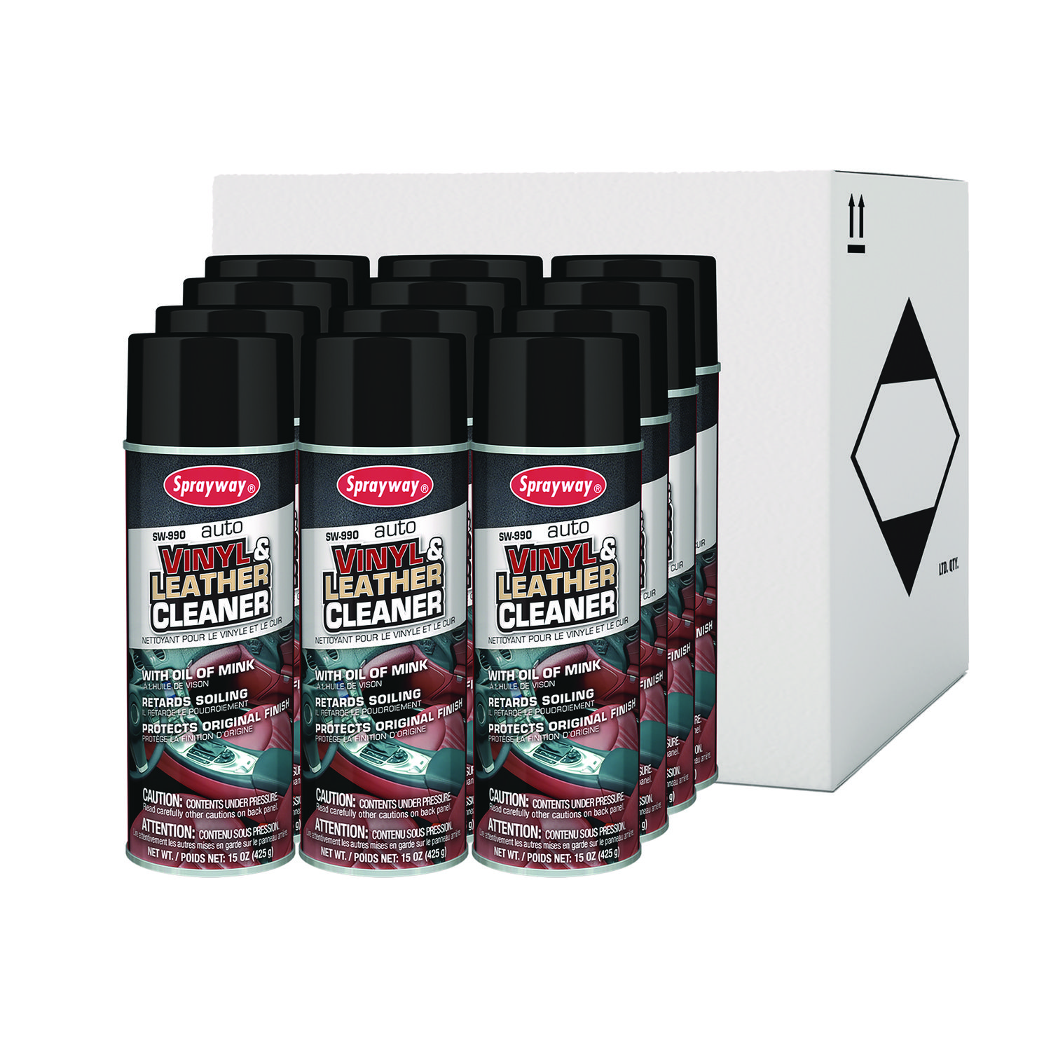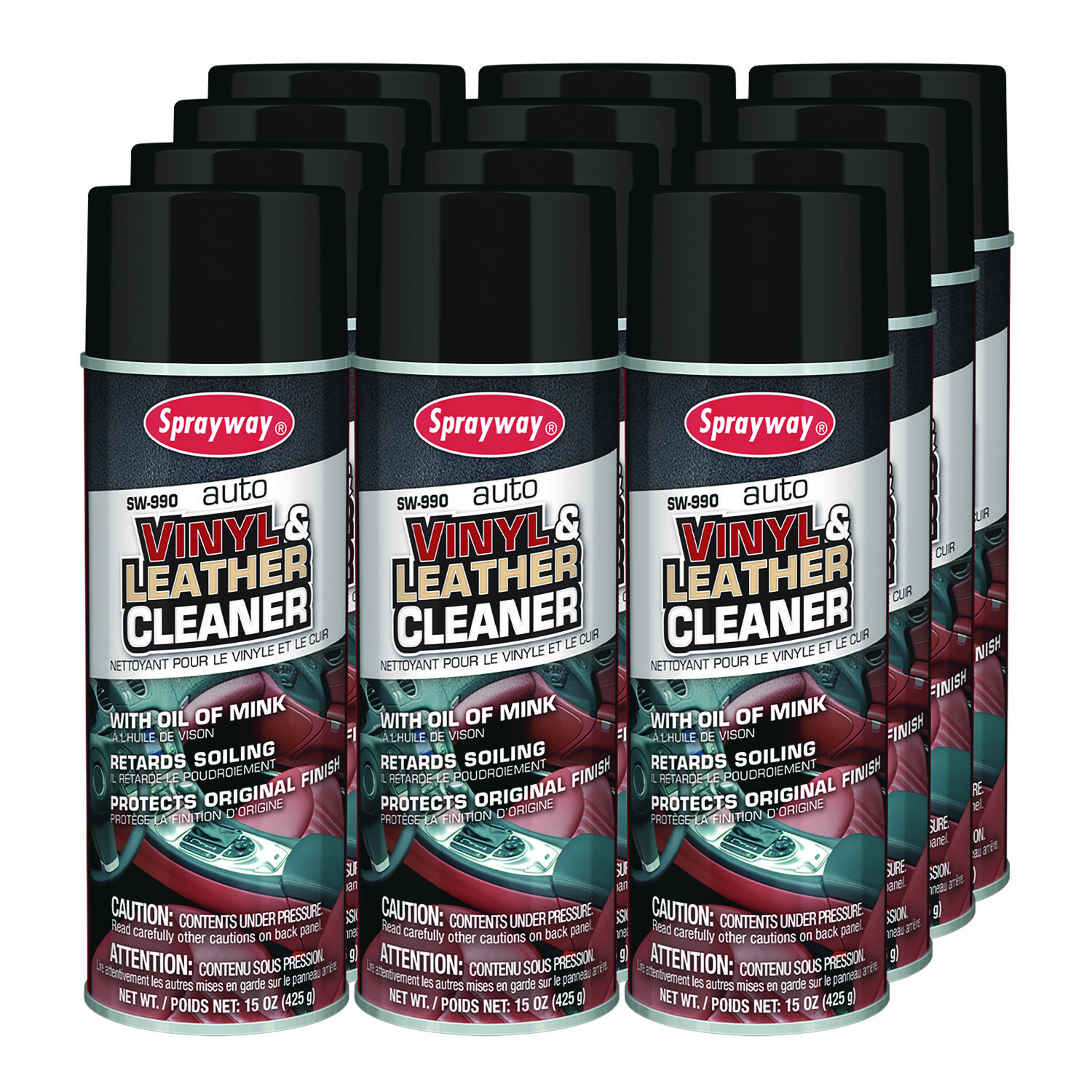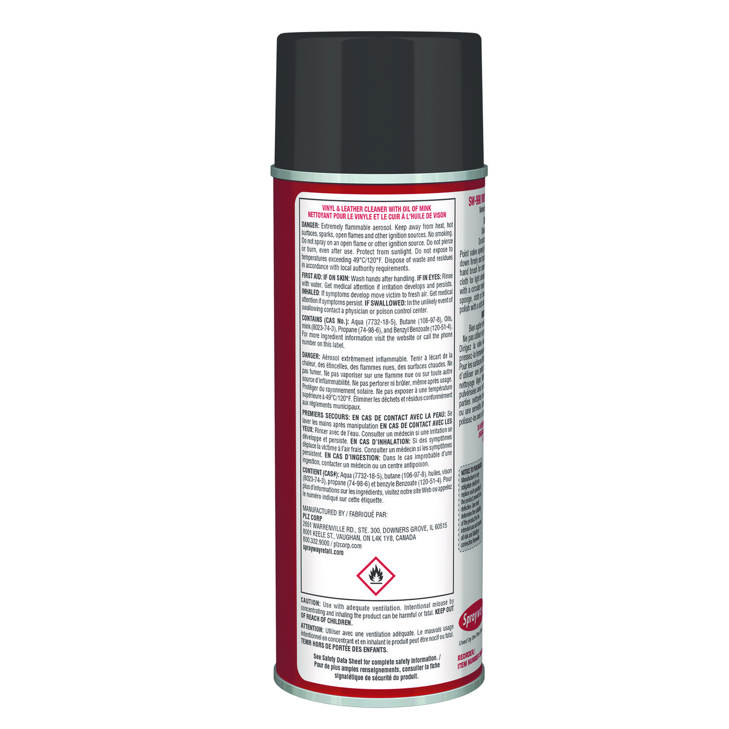 The spray offers a finished touch of elegance to surfaces as it contains oil of mink. Stains, smudges, fingerprints, salt and dirt are easily and gently removed. Application: Leather/Rubber/Vinyl Treatment; Applicable Material: Leather; Naugahyde; Vinyl; Vinyl Tops; White Walls; Chemical Compound: Butane; Propane; 2,4-Pentanediol; Glycine; Dirt Types: Dirt; Fingerprints; Salt; Smudges; Stains.