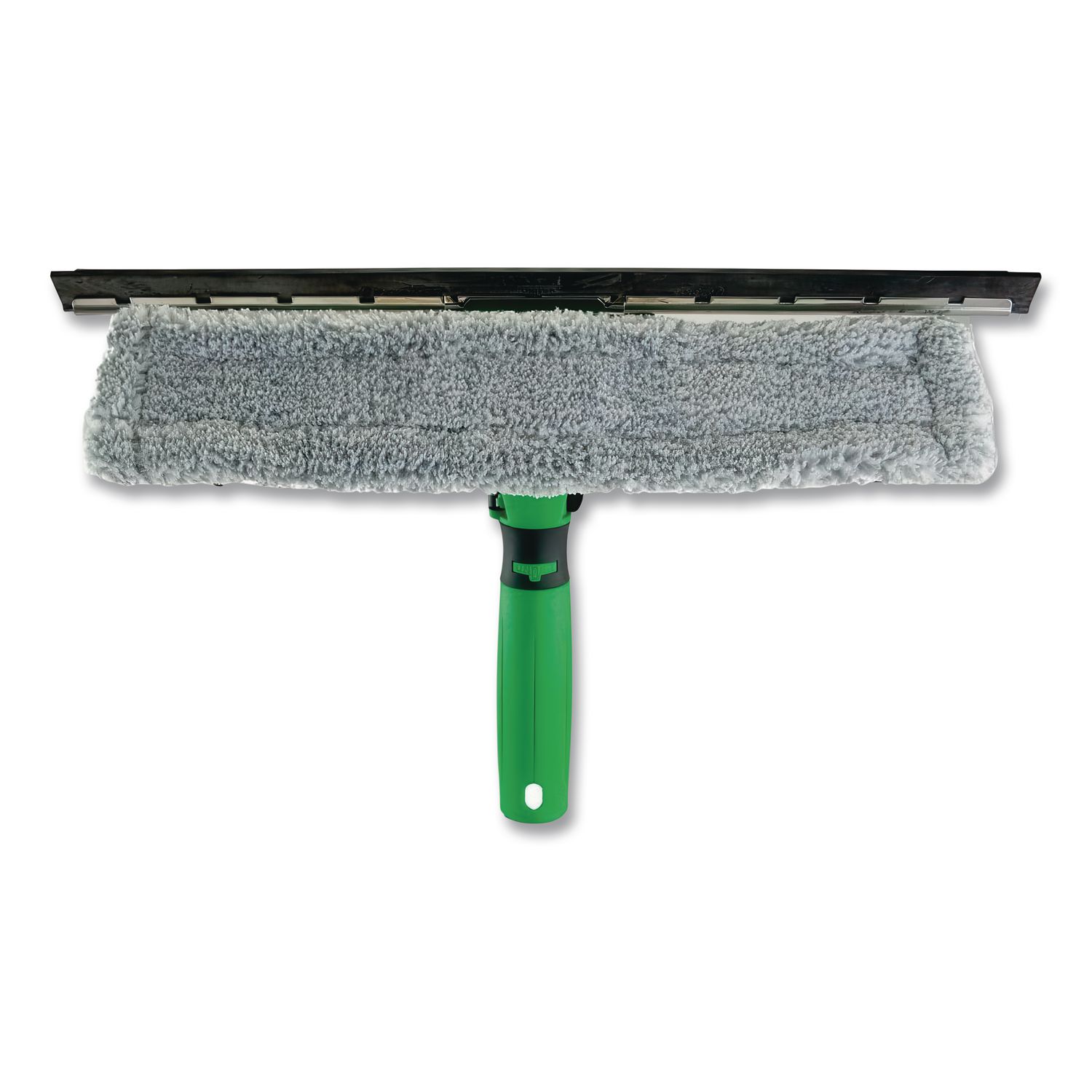 A strip washer and squeegee in one. Just wash, flip over and squeegee using hand or pole. Quick-spring release accepts both Pro® and “S” channels (not included). Heads can be offset to clean over ledges. Blade Material: Rubber; Blade Width: 14″; Blade Color: Green.