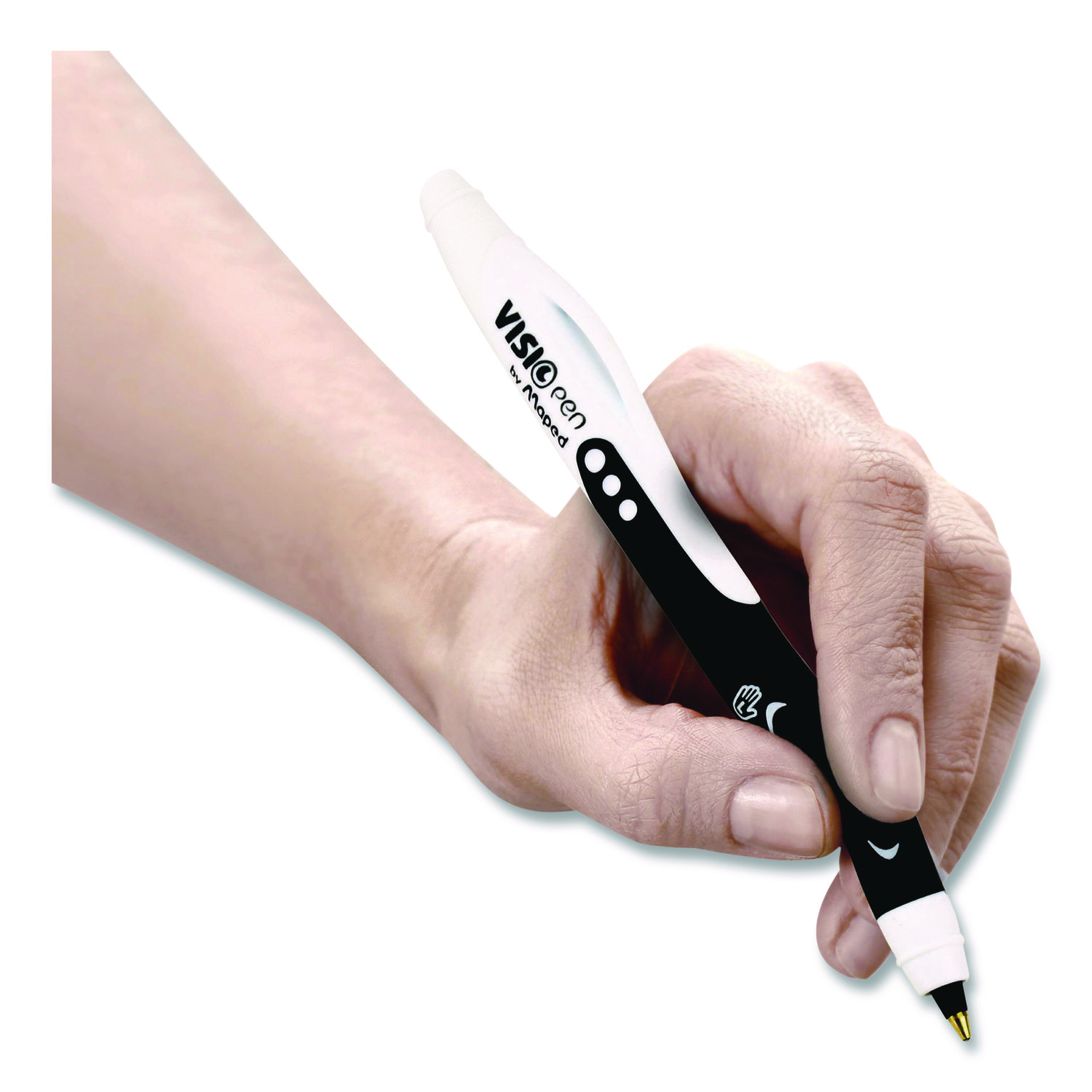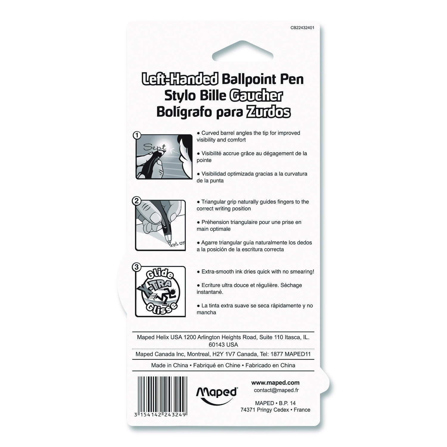 The first pen to offer left-handers more visibility as they write! The Visio Left-Handed Pen by Maped features a unique, curved barrel which angles the pen tip so left-handed users can easily see where they are writing without needing to ‘hook’ their wrist around. Comfortable, soft-touch triangular grip guides fingers into the correct position for a natural writing motion. Special quick-dry ink also helps against smearing when writing! Pen Sub-Brand & Product Family: Visio; Pen Type: Ballpoint Pen; Pen Style: Stick; Pen Tip Type: Conical.