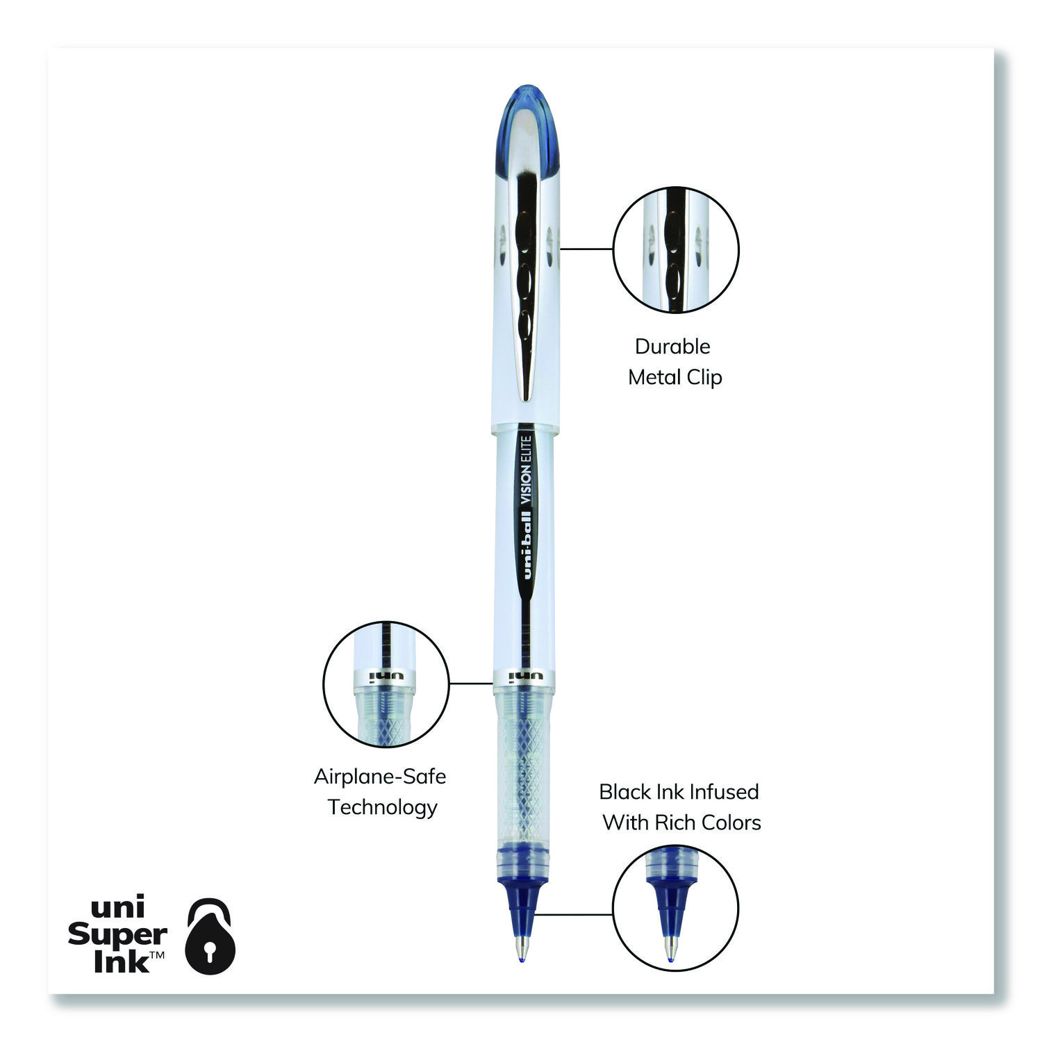 Capture ideas as vividly as you can imagine them with uniball® VISION ELITE™ Rollerball Stick Pens. Featuring a bend-resistant stainless-steel tip and a tungsten carbide rollerball, VISION ELITE™ delivers smooth, intense lines with unparalleled definition. uni Super Ink technology ensures their ink settles deep into paper to provide three-way protection against water, fading and fraud, and exclusive uni-Flow Ink System ensures a consistent, delightfully fluid writing experience, while also providing leak-proof performance during in-flight cabin pressure changes. No matter the altitude, express your signature style with the sleek, modern design and elite performance of uniball® VISION ELITE™ Rollerball Pens. Pen Sub-Brand & Product Family: VISION ELITE™ BLX Series; Pen Type: Rollerball Pen; Pen Style: Stick; Pen Tip Type: Conical.